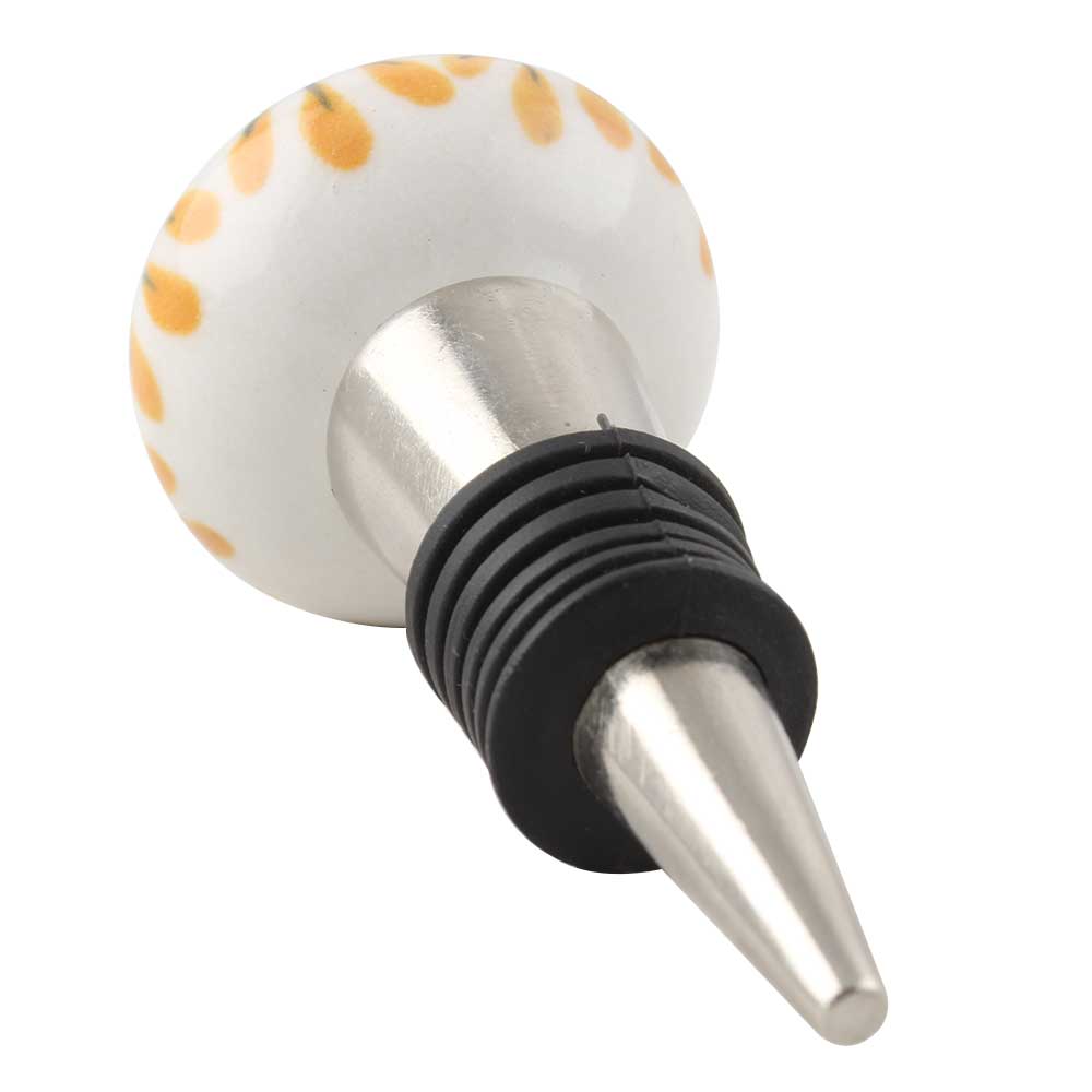 Pea Green Ceramic Floral Wine Stopper. Zinc Alloy Wine Bottle Stopper with Attractive Jute Bag Packaging.