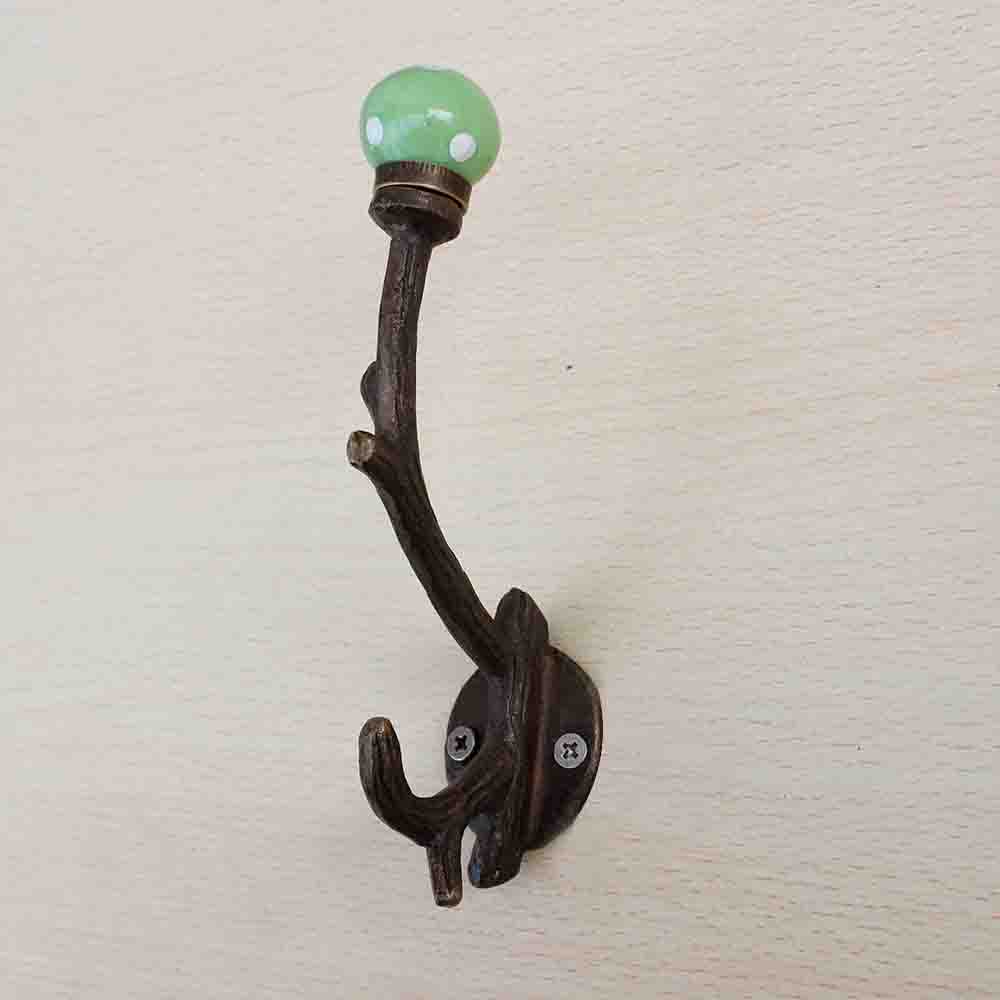 Pea Green Dot Tree Hook-Ehg-28. When Put on Wall or Cabinet It Gives A Sturdy Look. This Hook is Strong Enough to Hold Your Cloths, Keys, Tea Cups, Coffee Mugs, Hand Towels Etc.