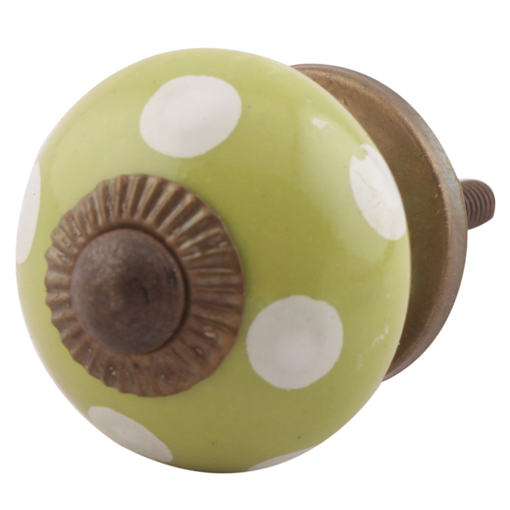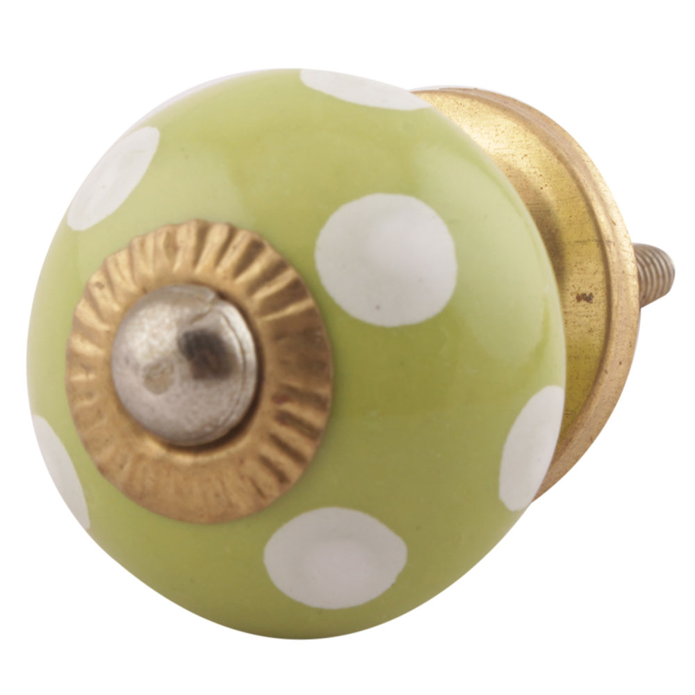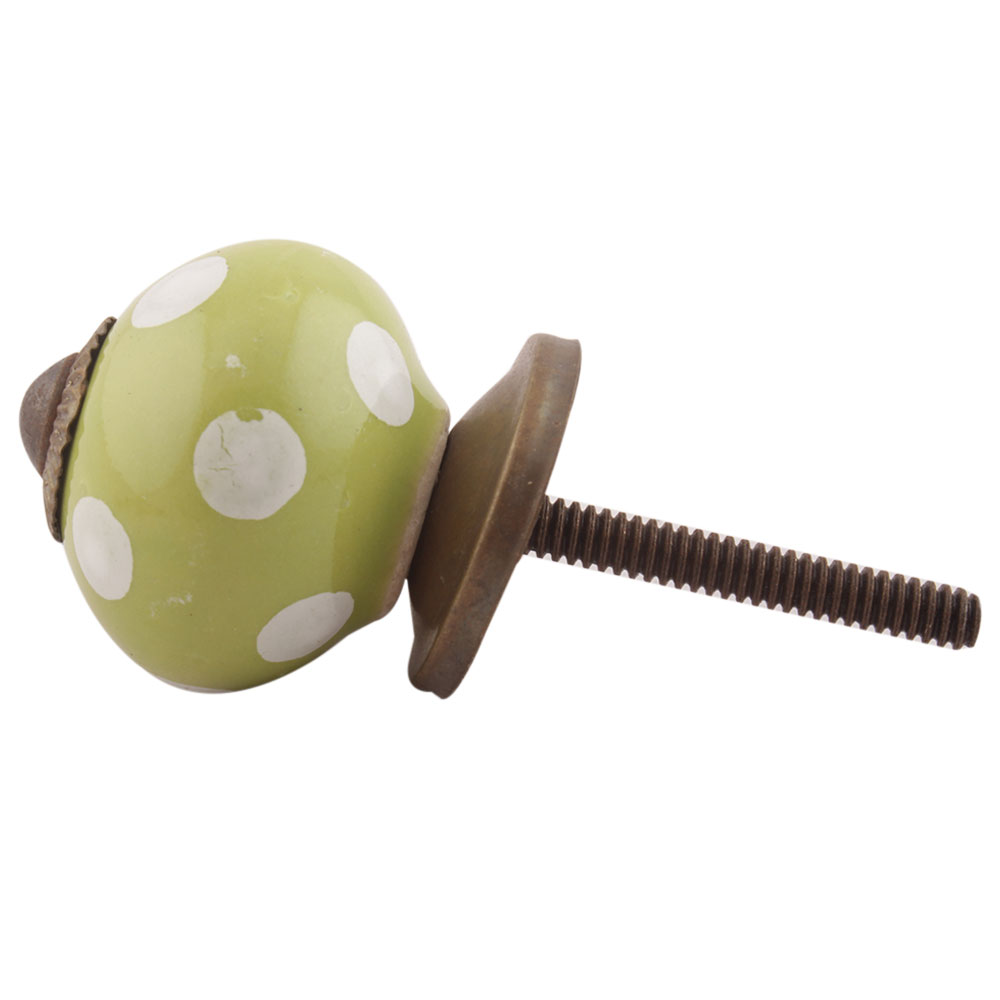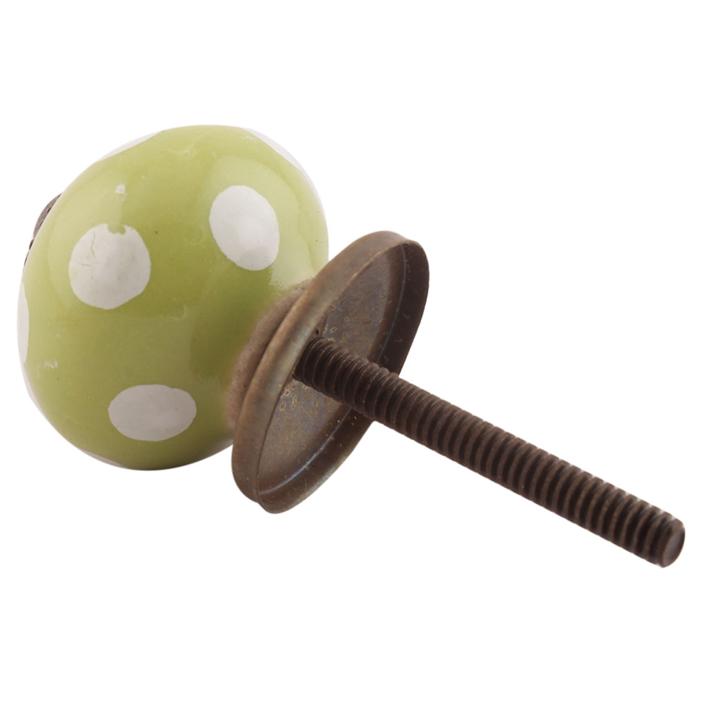 Pea Green Dotted Small Ceramic Drawer Knobs. Ideal for Drawer, Dresser, Cabinet, Wardrobe, Cupboard and almirah