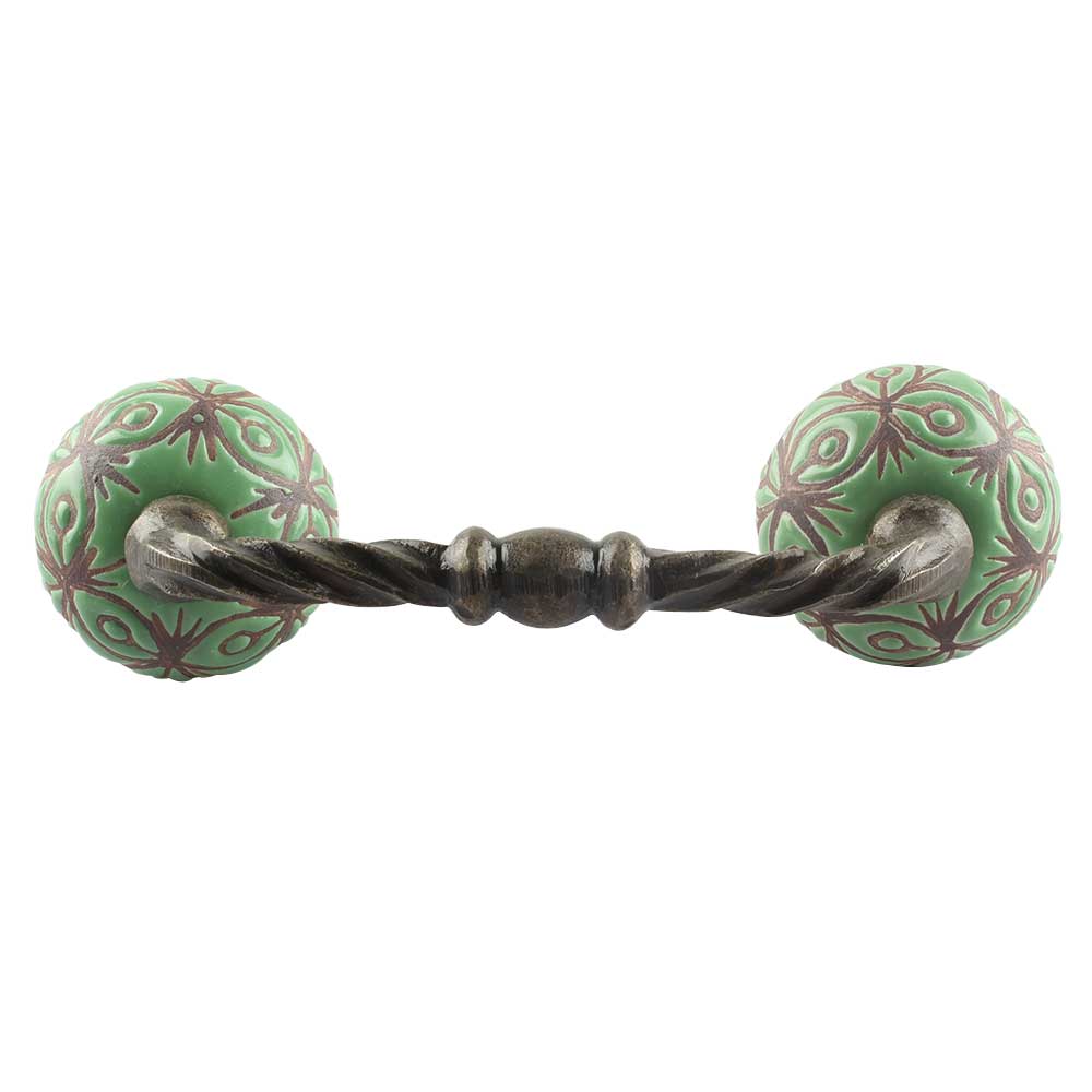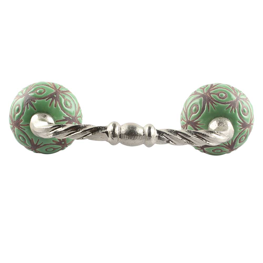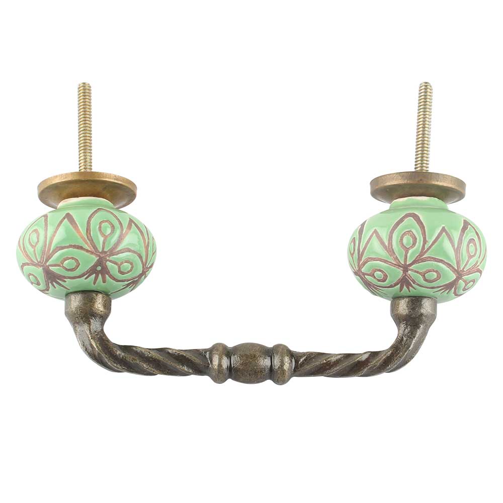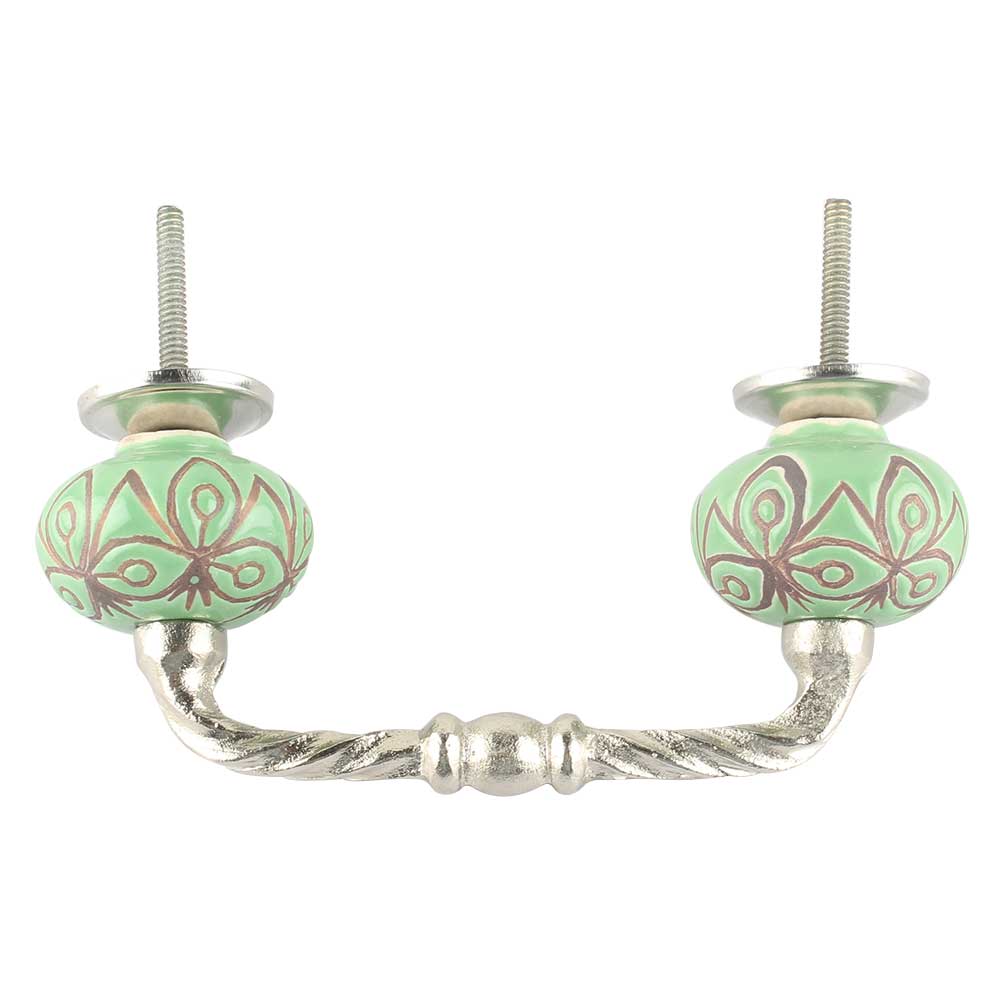 Pea Green Etched Ceramic Floral Cut Bridge Handle Online. Ideal for Drawer, Dresser, Cabinet, Wardrobe, Cupboard and Almirah etc.