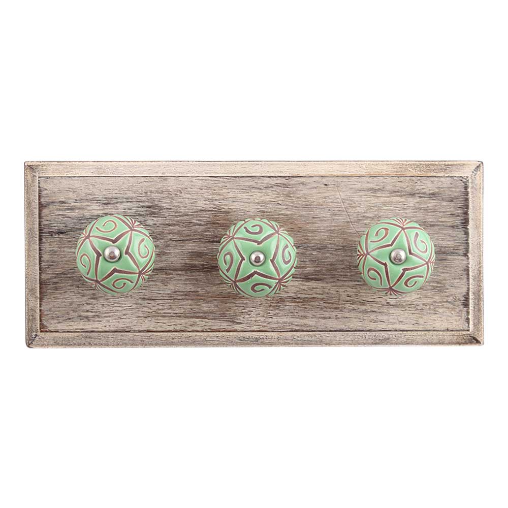 Pea Green Etched Ceramic Wooden Hook. A Perfect Complement to the Soft Tone of the Wood are these White Traditional Hat Coat Hook Made of Genuine Porcelain and Brass. It can be use to Hang Jewellery, Leashes, Towels, Scarves, Light Weight Sweaters, Caps Etc.