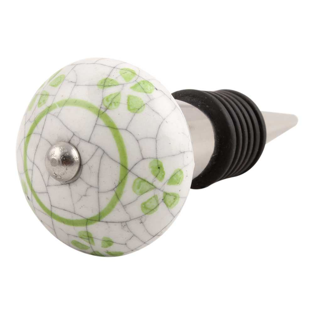 Pea Green Floral Crackle Ceramic Wine Stopper. Zinc Alloy Wine Bottle Stopper with Attractive Jute Bag Packaging.