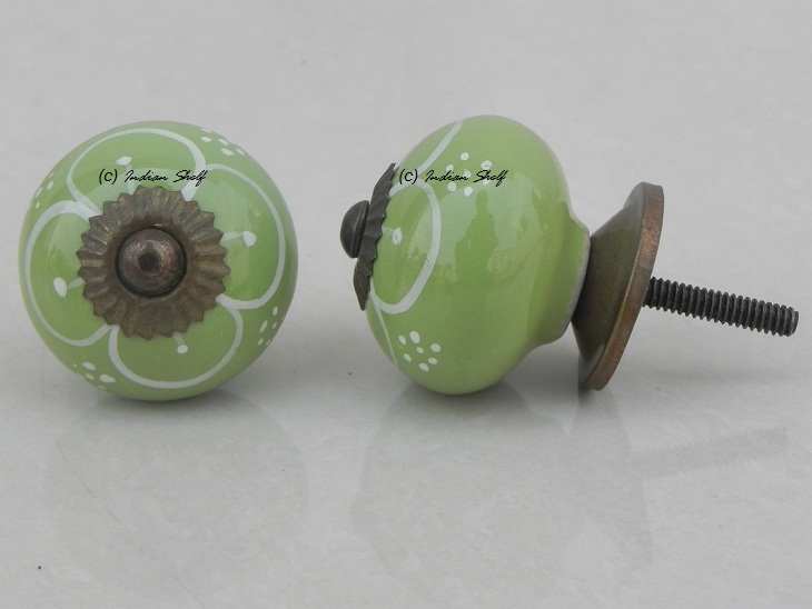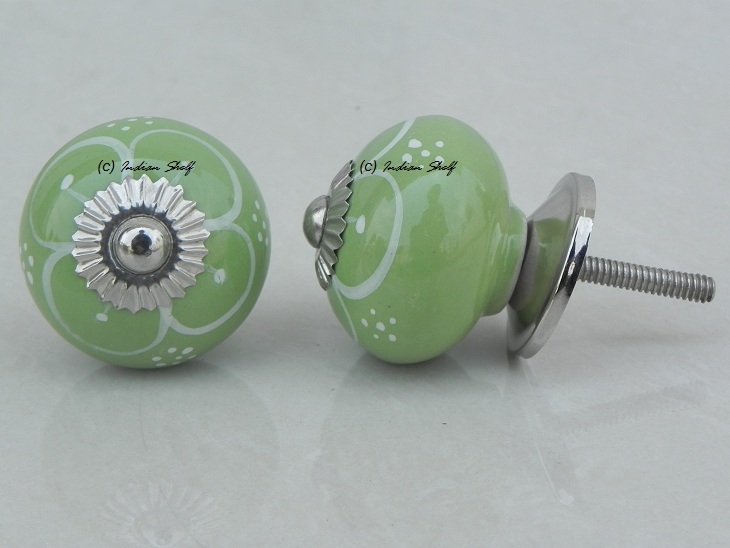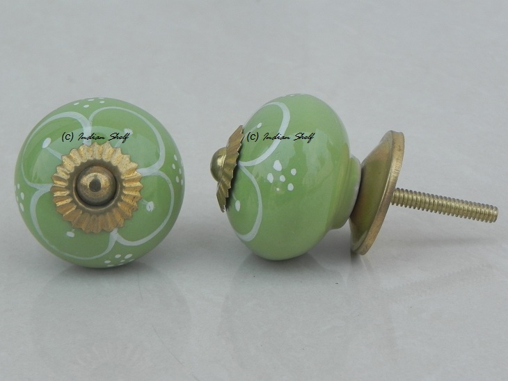 Pea Green Flower ceramic knob. Ideal for kitchen cabinets, kitchen drawers, dining room, bed room, chest drawers, dressing tables, almirah