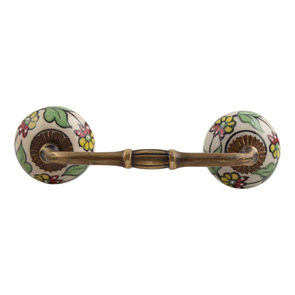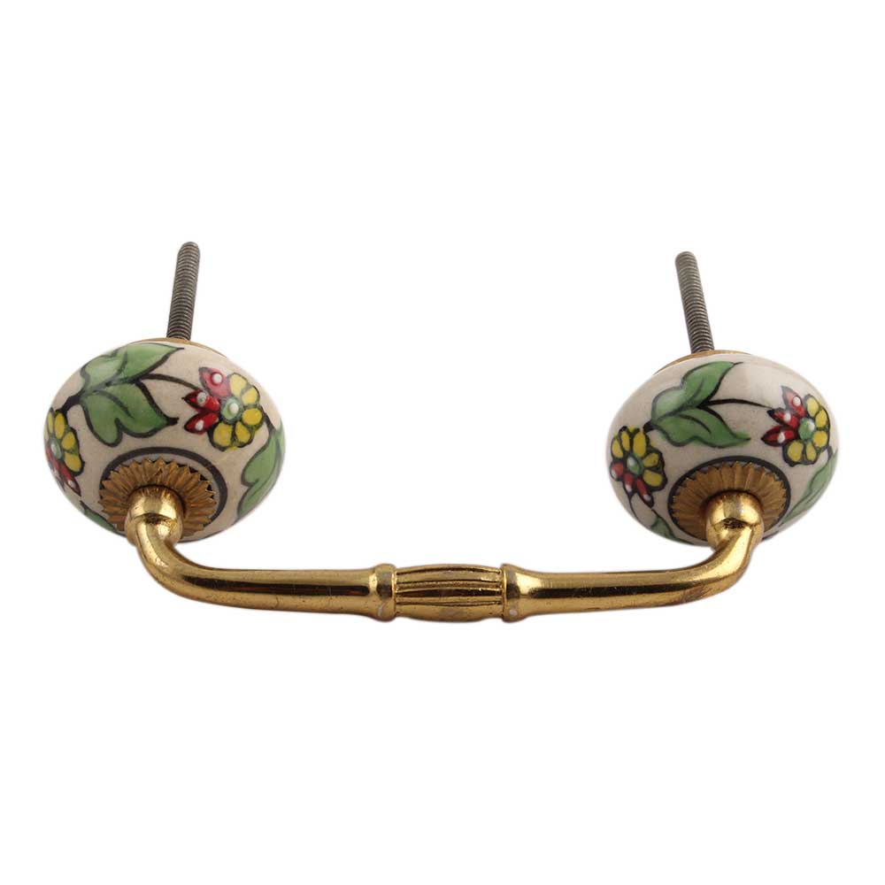 Pea Green Leaf Flower Ceramic Bridge Handle. Ideal for Drawer, Dresser, Cabinet, Wardrobe, Cupboard and Almirah.
