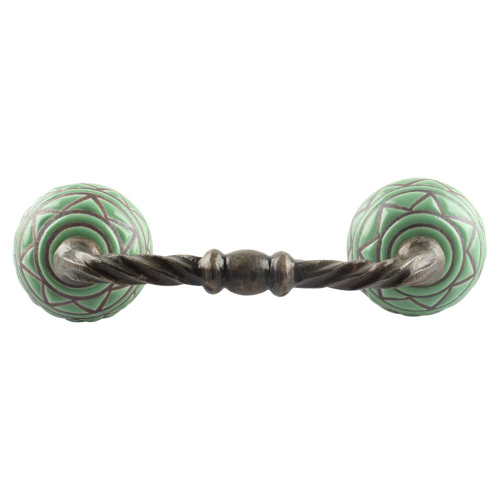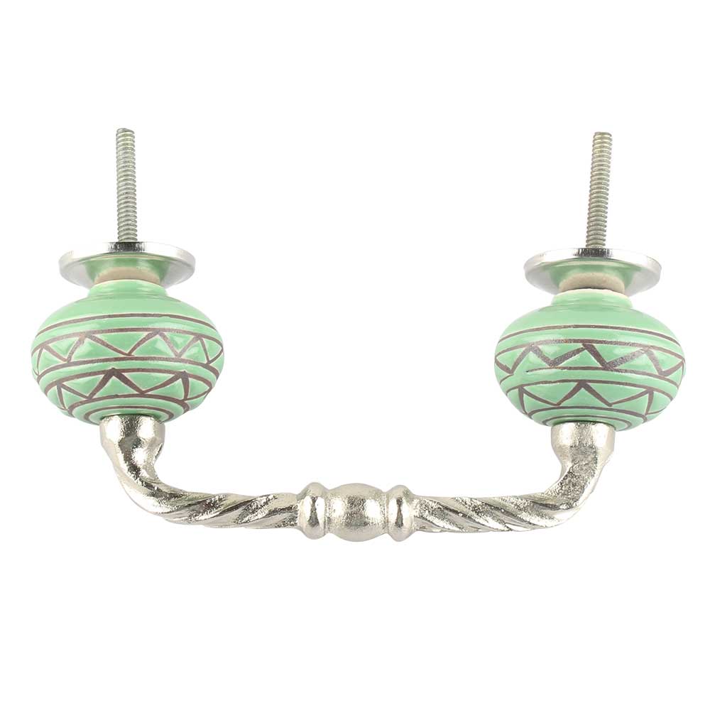 Pea Green Pattern Etched Ceramic Cut Bridge Handle Online. Ideal for Drawer, Dresser, Cabinet, Wardrobe, Cupboard and Almirah etc.
