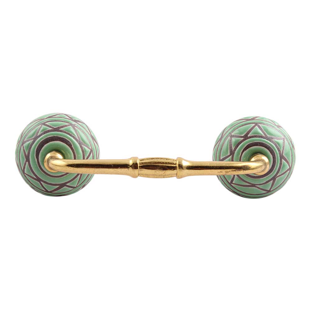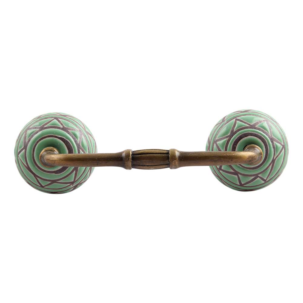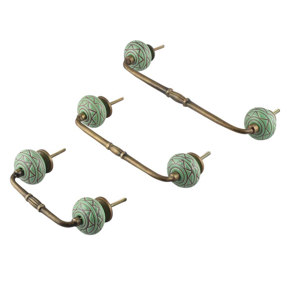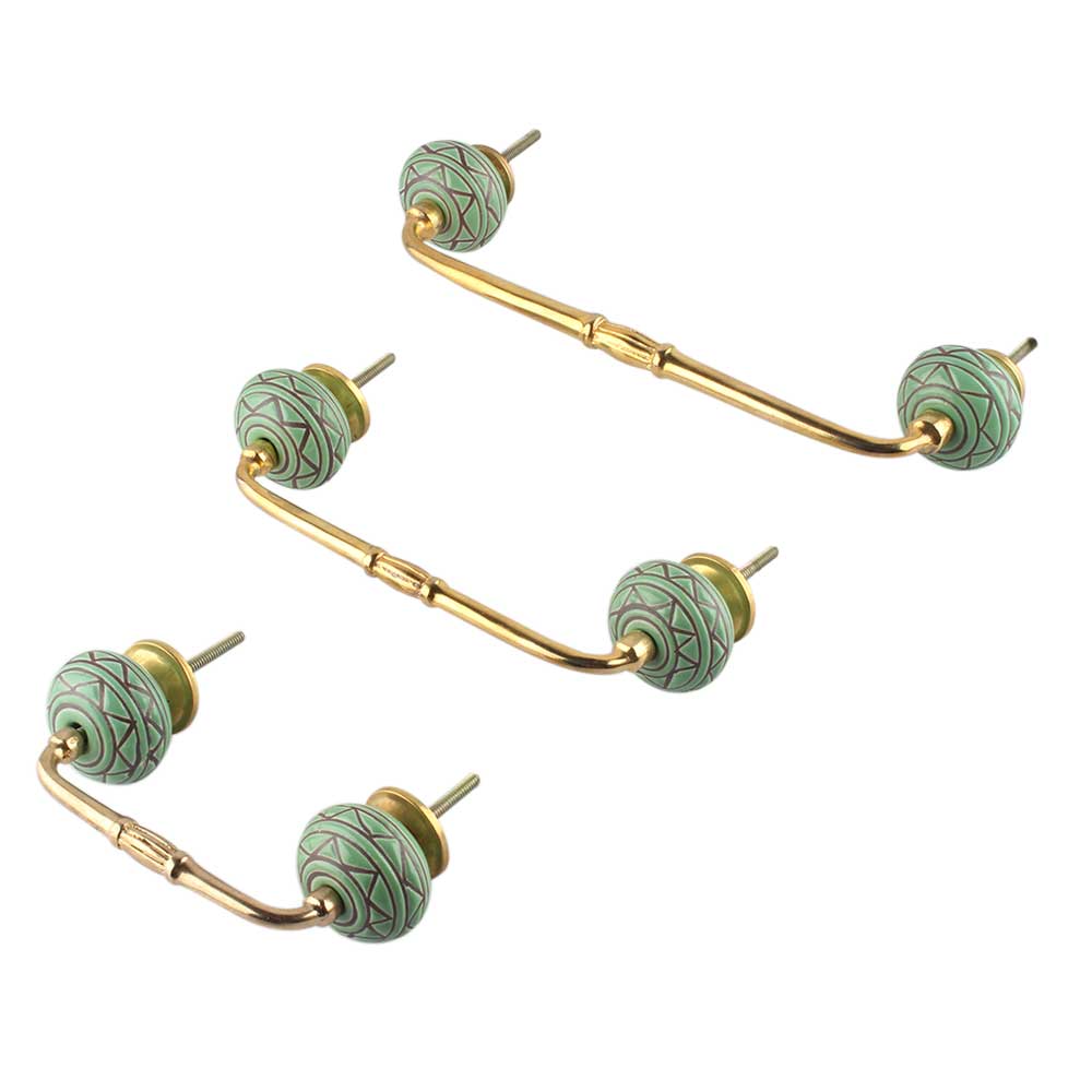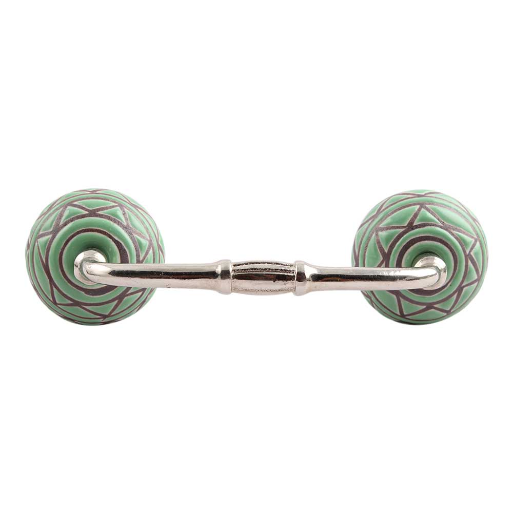 Pea Green Pattern Etched Ceramic Floral Bridge Handle. Ideal for Drawer, Dresser, Cabinet, Wardrobe, Cupboard and Almirah.