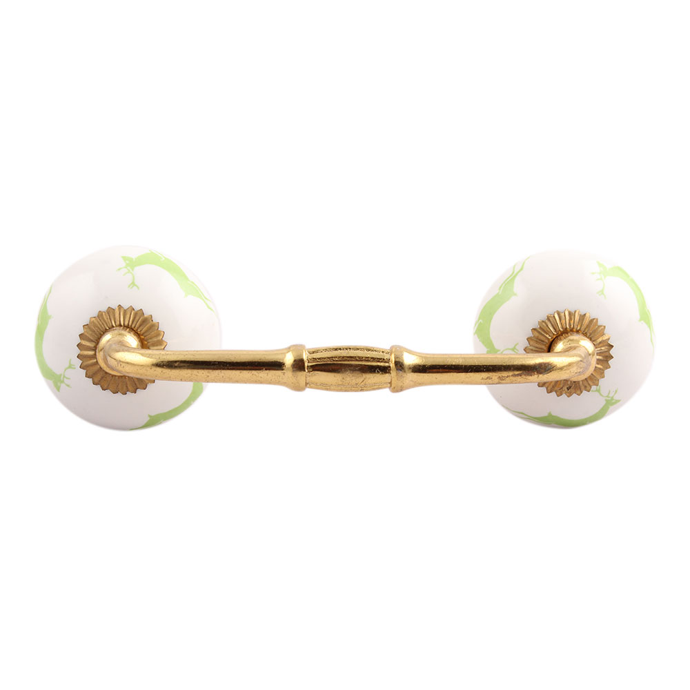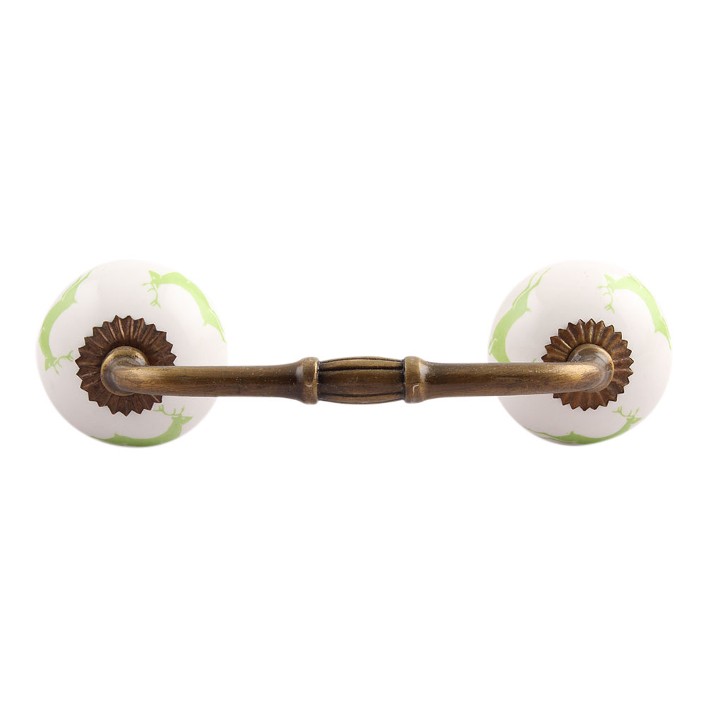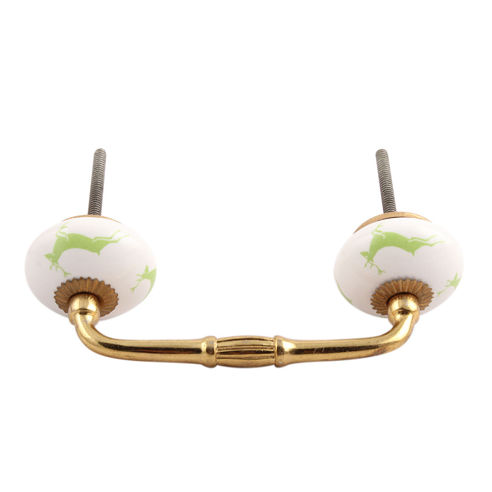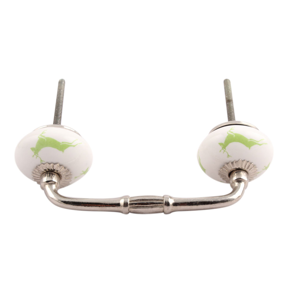 Pea Green Running Rein Deer Pattern Ceramic Bridge Handle. Ideal for Drawer, Dresser, Cabinet, Wardrobe, Cupboard and Almirah.