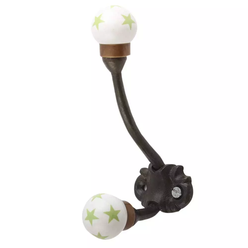 Pea Green Star Iron Hook-Ehg-102. When Put on Wall or Cabinet It is An Art in Itself. This Hook is Strong Enough to Hold Your Cloths, Keys, Tea Cups, Coffee Mugs, Hand Towels Etc.