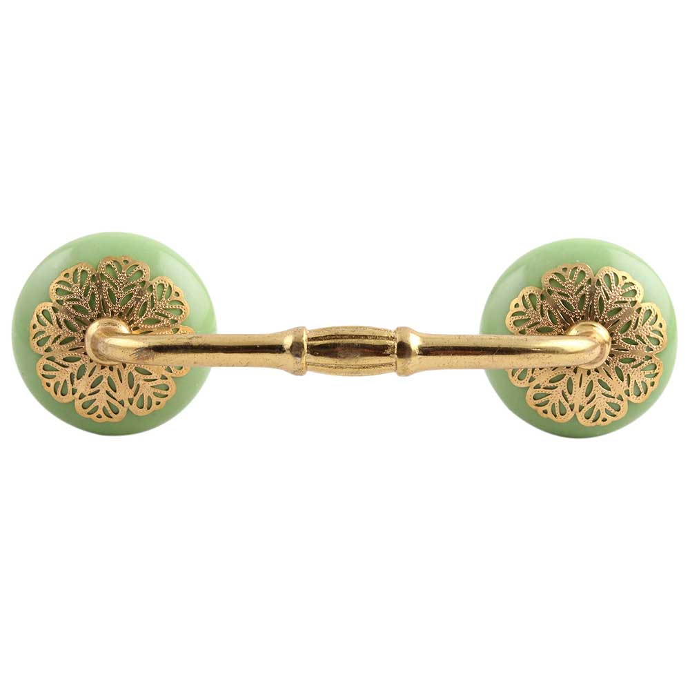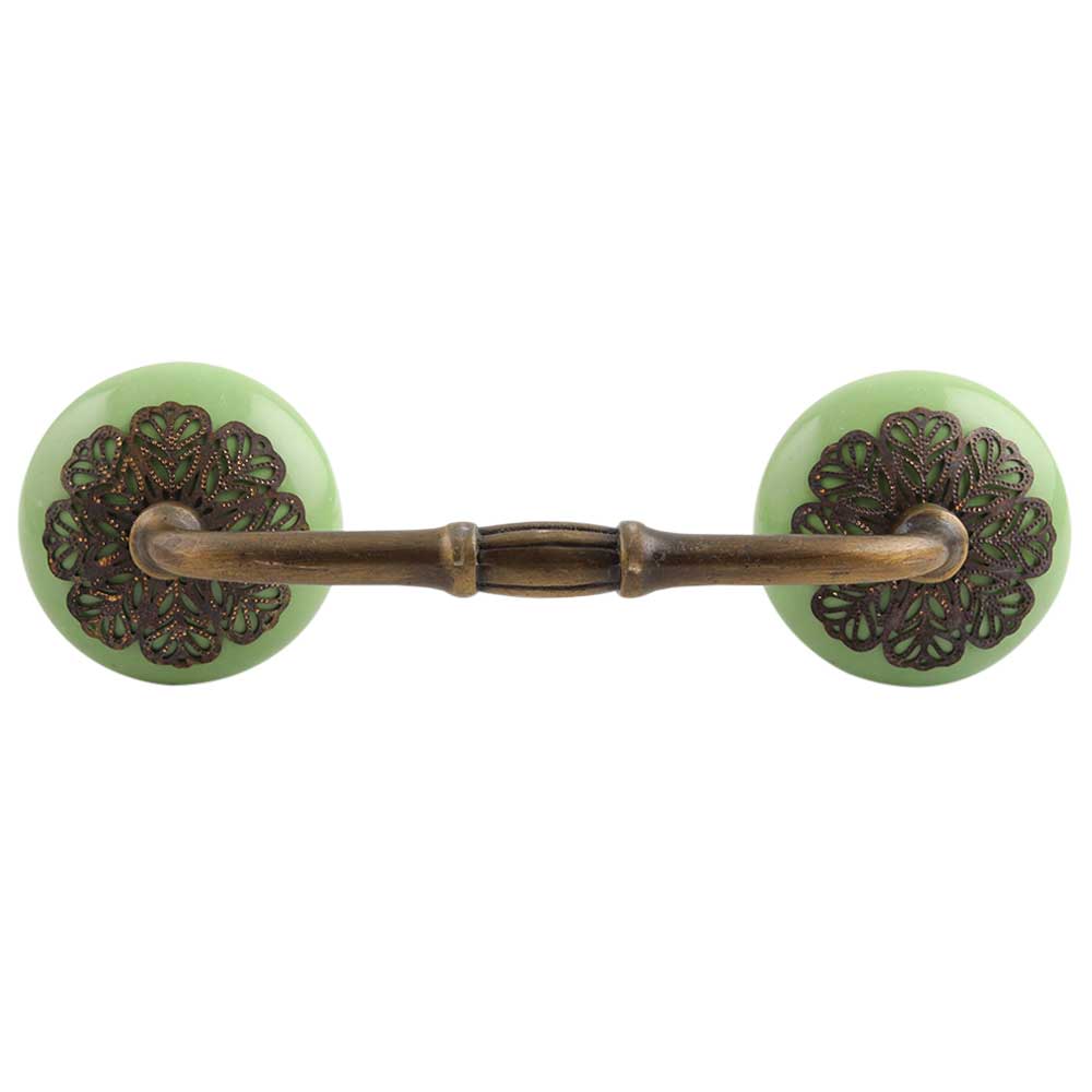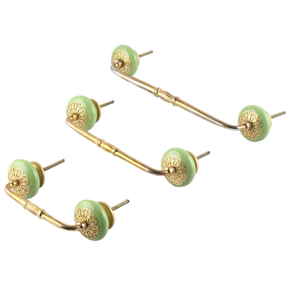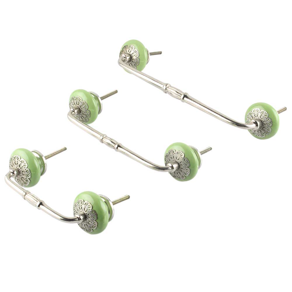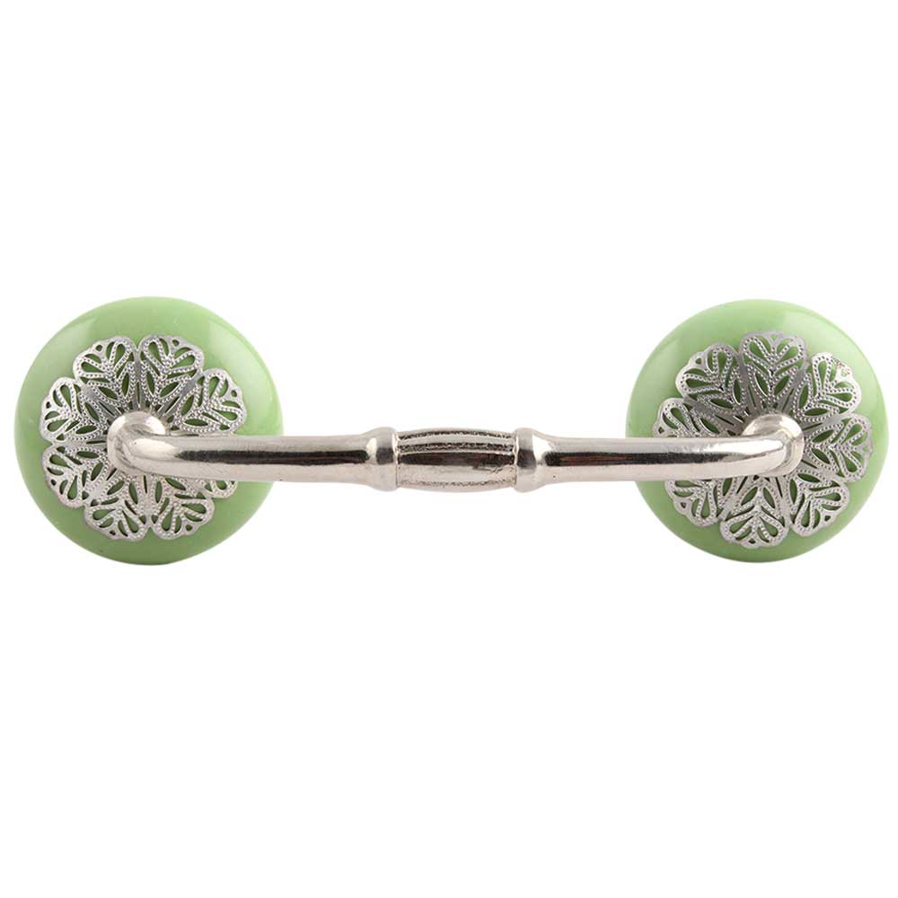 Pea Green Strewn Flat Ceramic Bridge Handle. Ideal for Drawer, Dresser, Cabinet, Wardrobe, Cupboard and Almirah.