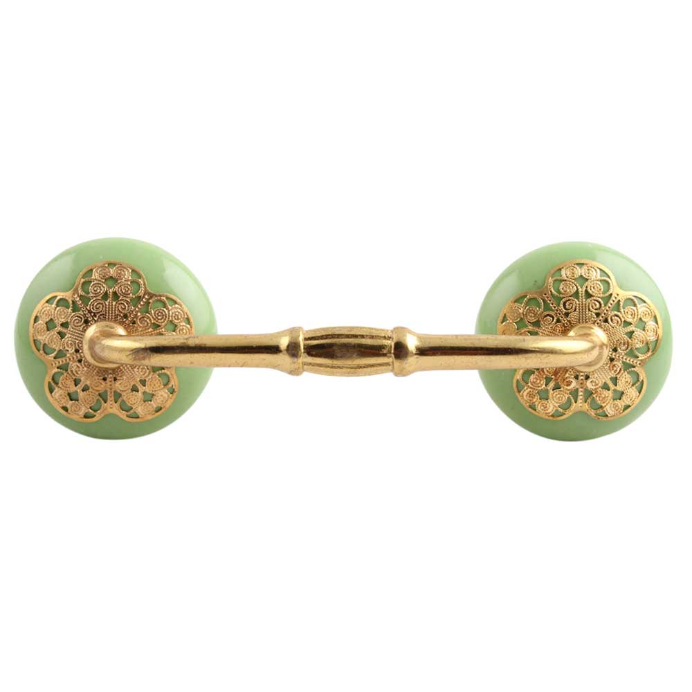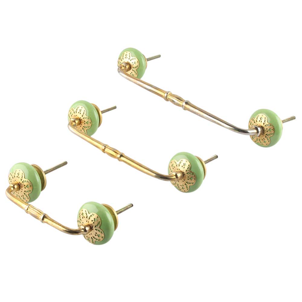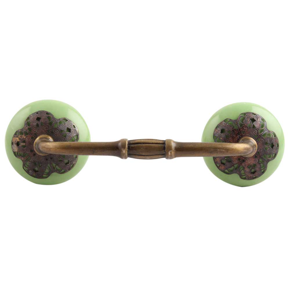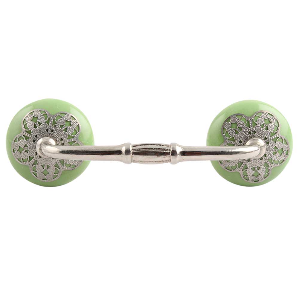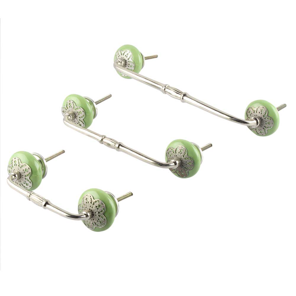 Pea Green Strewn Flat Ceramic Bridge Handle. Ideal for Drawer, Dresser, Cabinet, Wardrobe, Cupboard and Almirah.