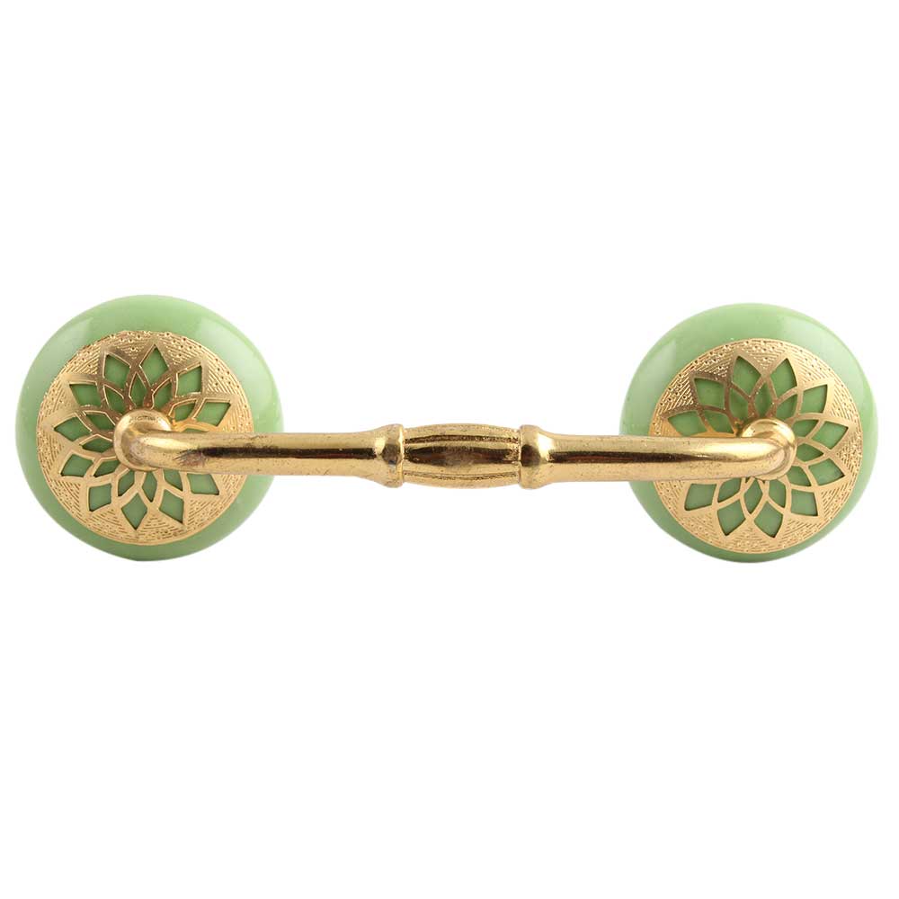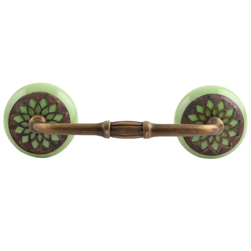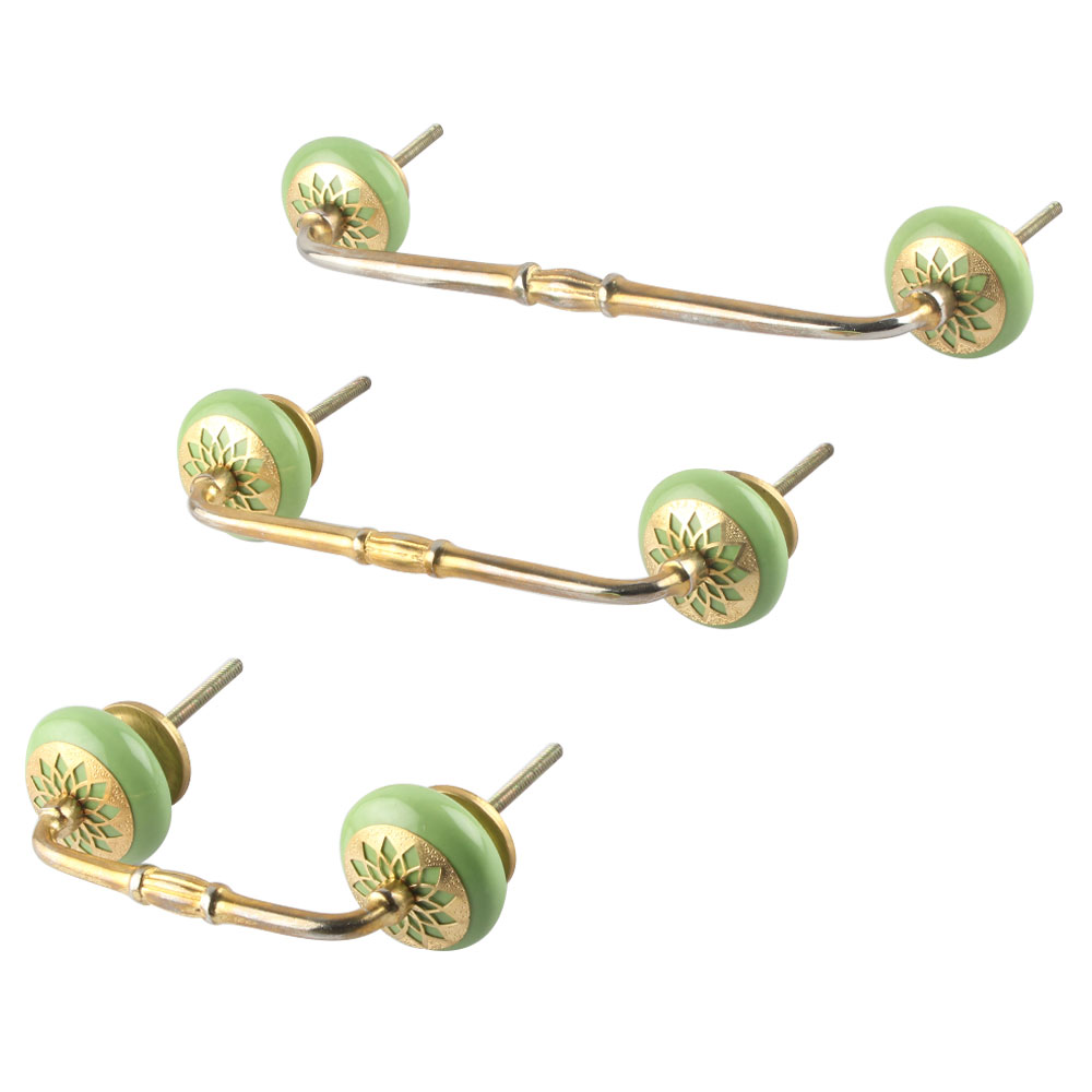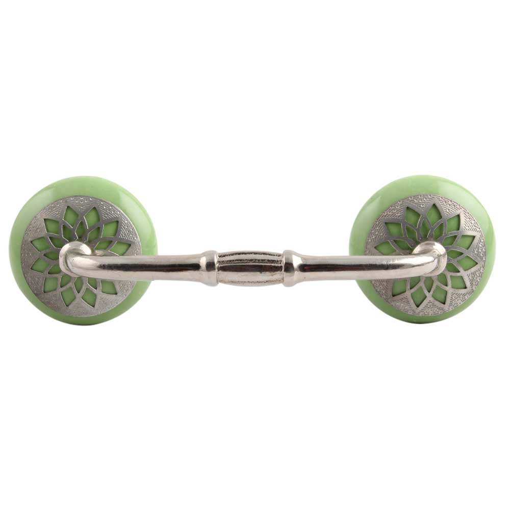 Pea Green Strewn Flat Ceramic Bridge Handle. Ideal for Drawer, Dresser, Cabinet, Wardrobe, Cupboard and Almirah.