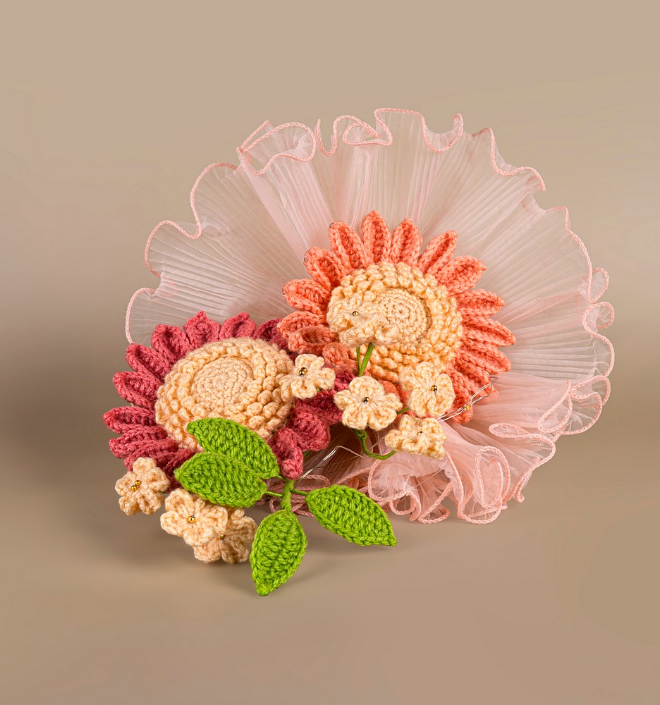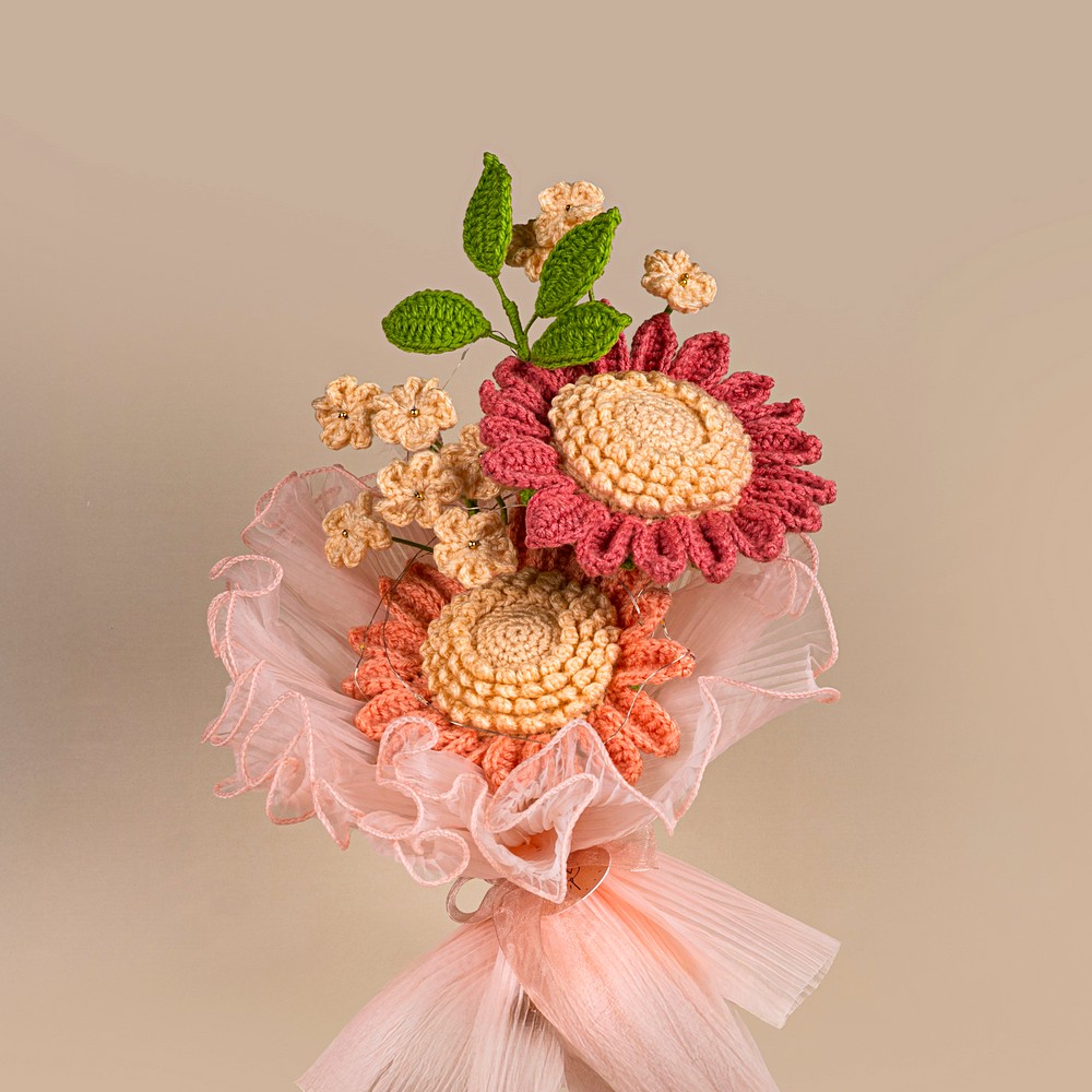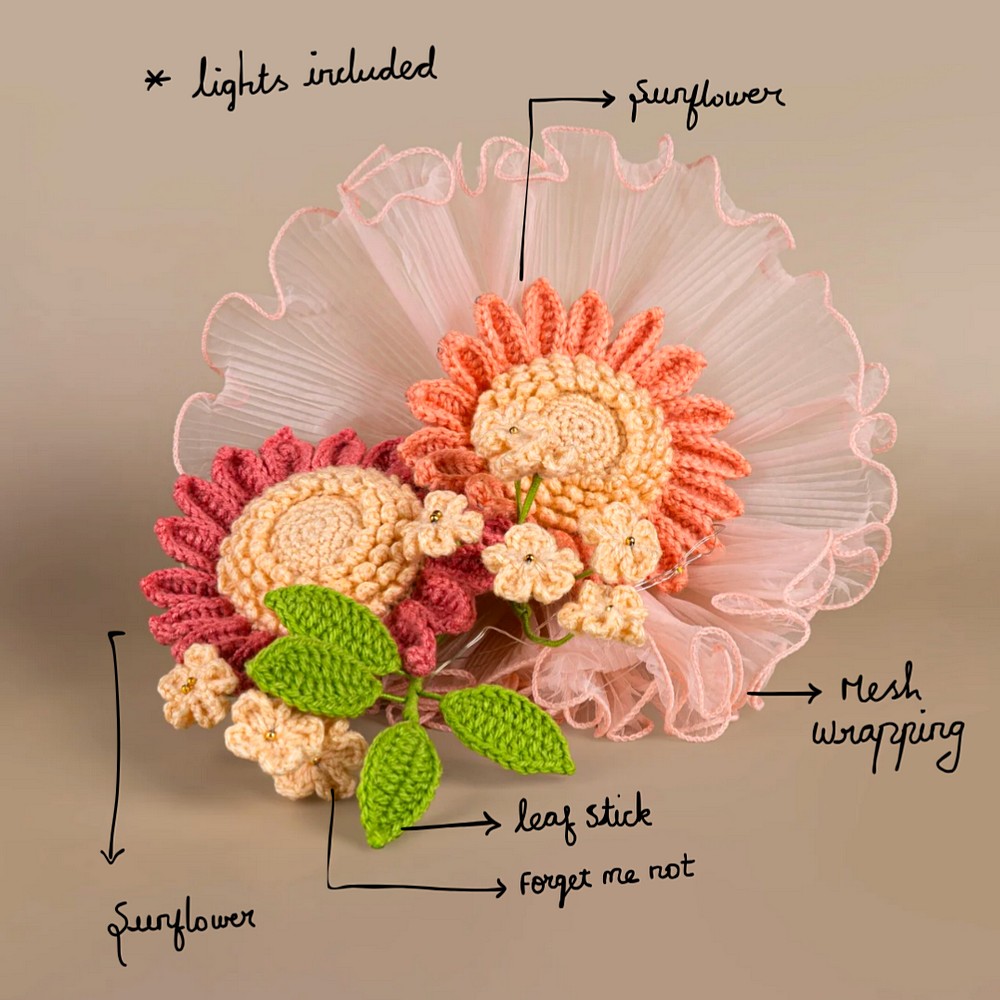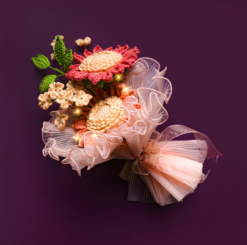 - Expertly crocheted petals and leaves are shaped by hand using premium acrylic yarn and fibre filling, with craft wire giving each bloom bunch a realistic posture