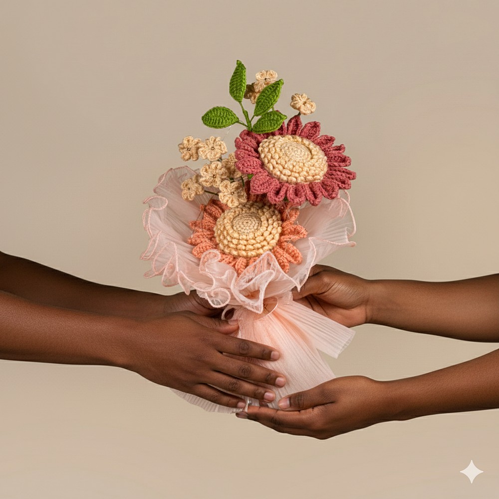 Keep your salmon crochet piece away from moisture and direct sun to prevent dust and fading. Dust gently with a soft brush or a hairdryer on cool, and reshape stems carefully if needed.