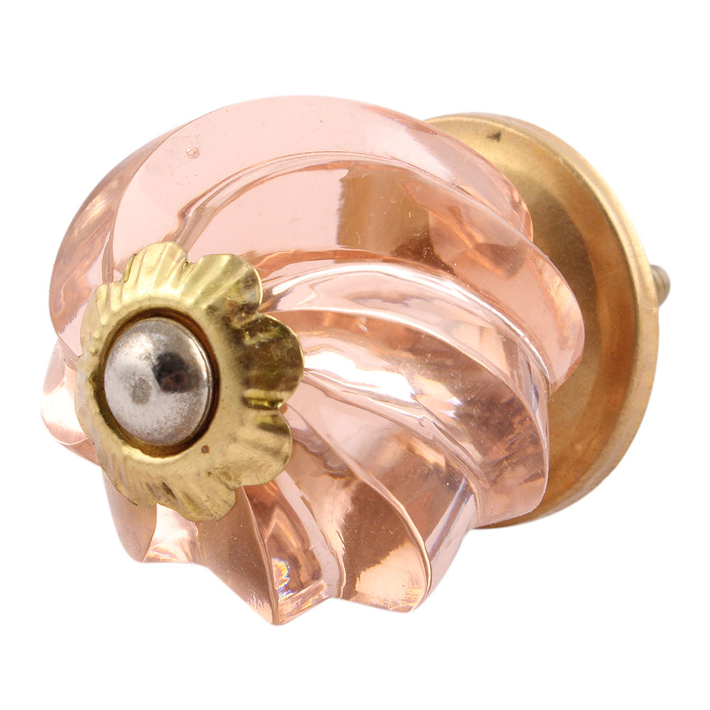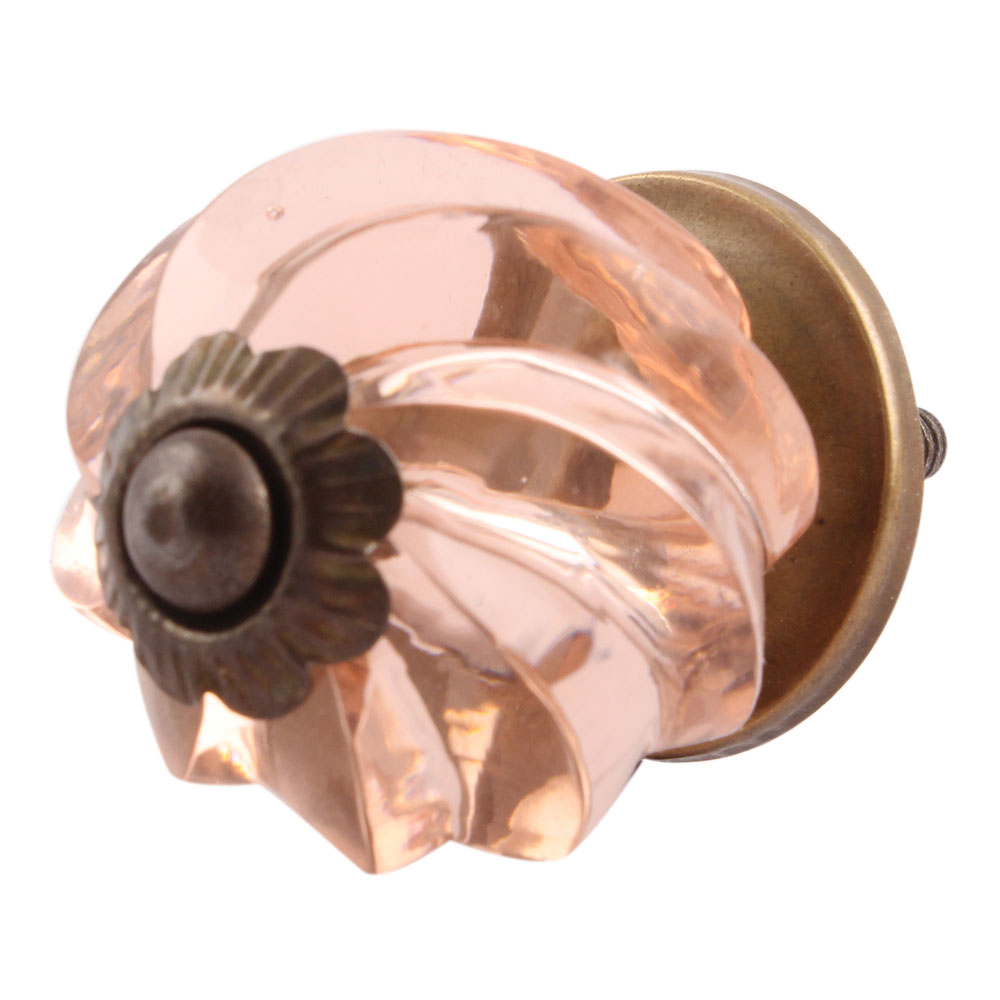 Peach Pink Interior Cut Glass Knobs. Ideal for Drawer, Dresser, Cabinet, Wardrobe, Cupboard and almirah