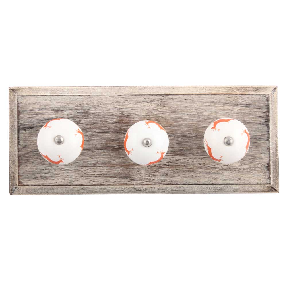 Peach Running Rein Deer Pattern Ceramic Wooden Hook. A Perfect Complement to the Soft Tone of the Wood are these White Traditional Hat & Coat Hook Made of Genuine Porcelain and Brass. It can be use to Hang Jewellery, Leashes, Towels, Scarves, Light Weight Sweaters, Caps Etc.
