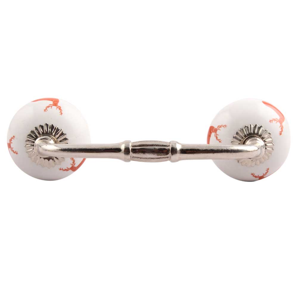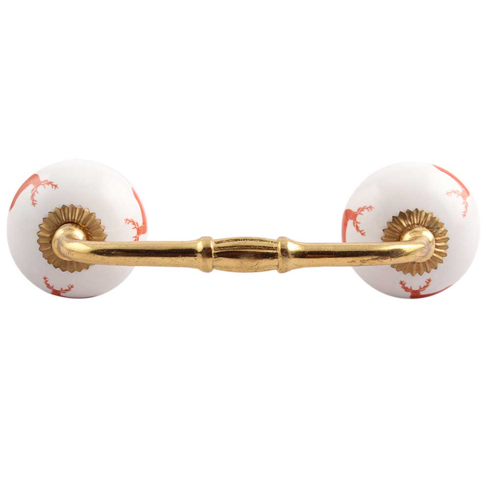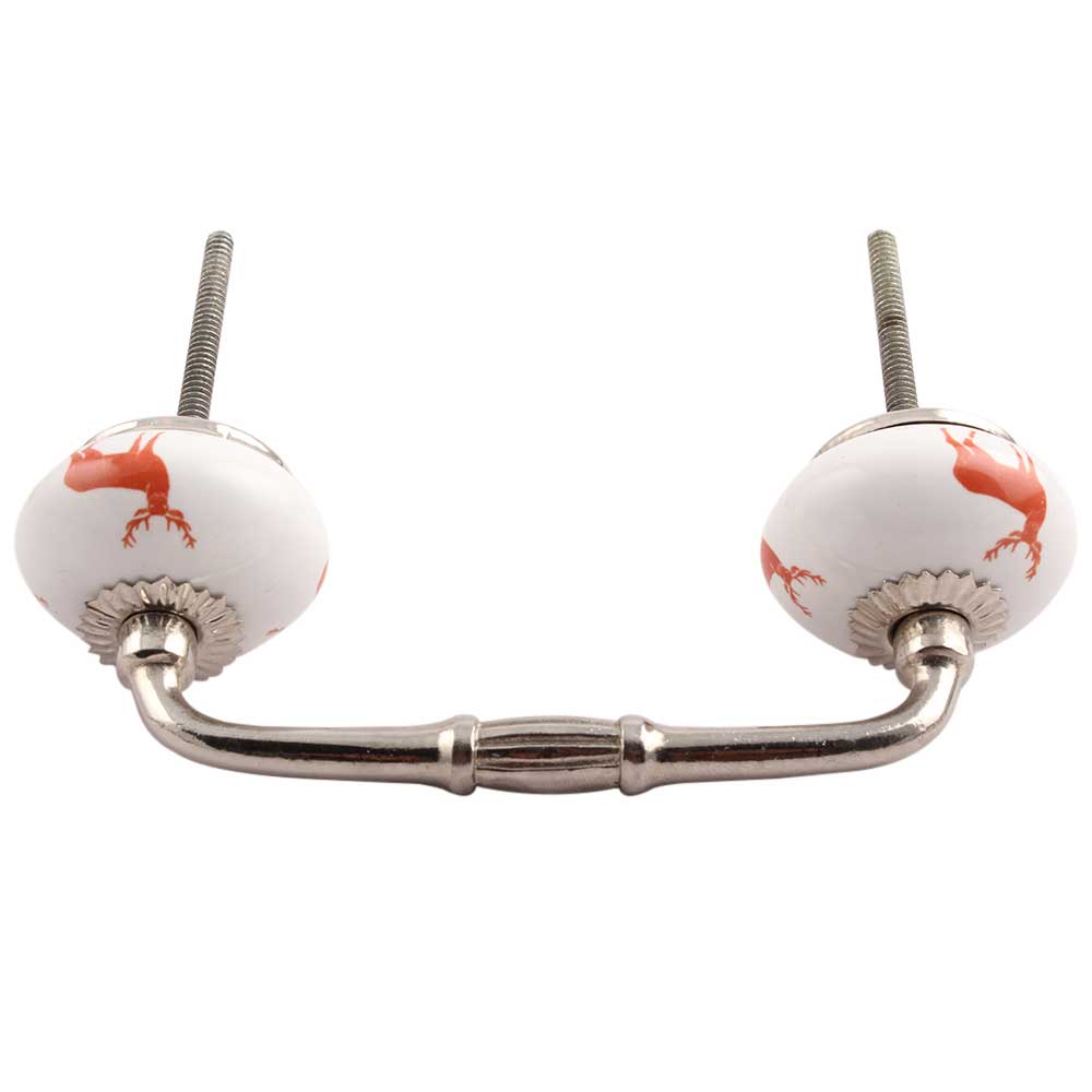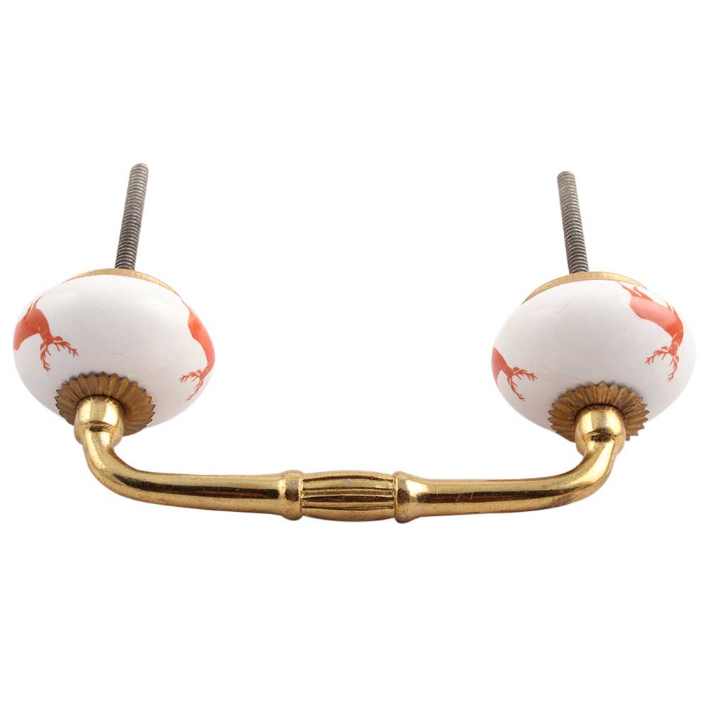 Peach Standing Rein Deer Pattern Ceramic Bridge Handle. Ideal for Drawer, Dresser, Cabinet, Wardrobe, Cupboard and Almirah.