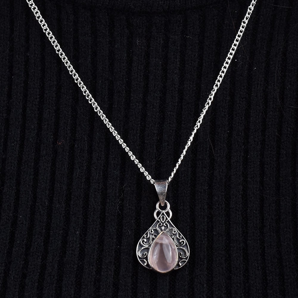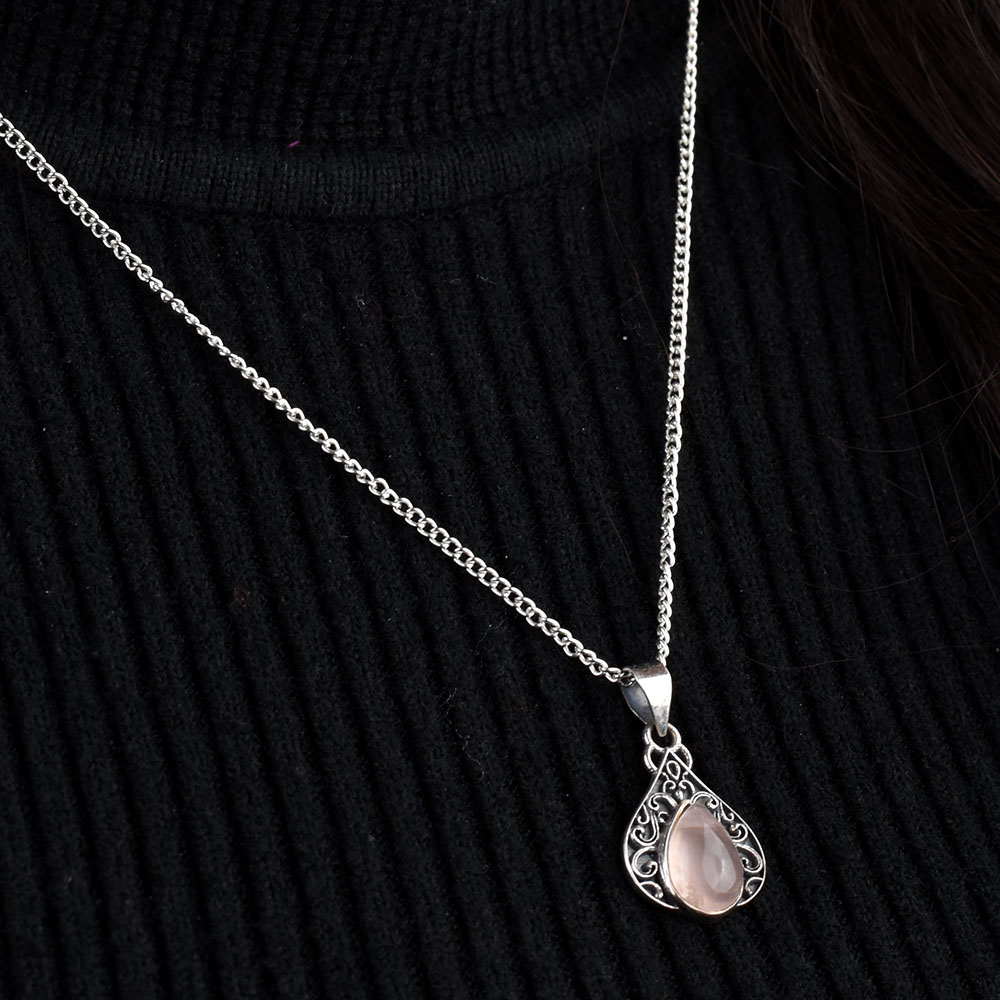 Peach Stone Teardrop Engraved 92.5 Sterling Silver Pendant Jewelry have a stylish look due to its unique pattern. It's the classic design of the jewelry that makes it attractive for you to wear. The jewelry is simple, different and beautiful that everyone is going to love.