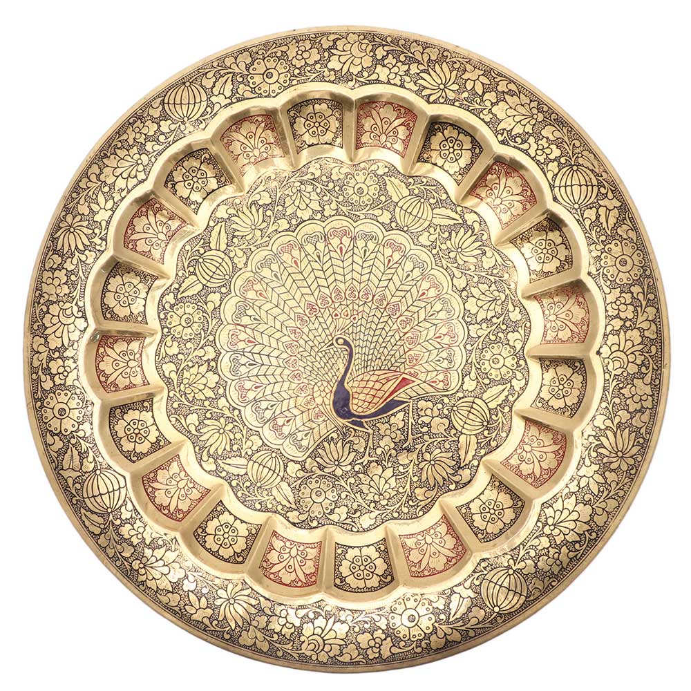 Choose a pair of this intricately decorated yet elegant peacock embellished decorative tray to leave a bold impact on your main spaces. The product is handcrafted yet is both sleek and captivating. The peacock embellished decorative tray requires due attention and care. To clean, use a soft cotton cloth to retain the incredible artwork on the plate. It is a true investment for your home.