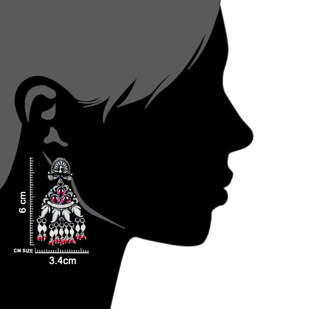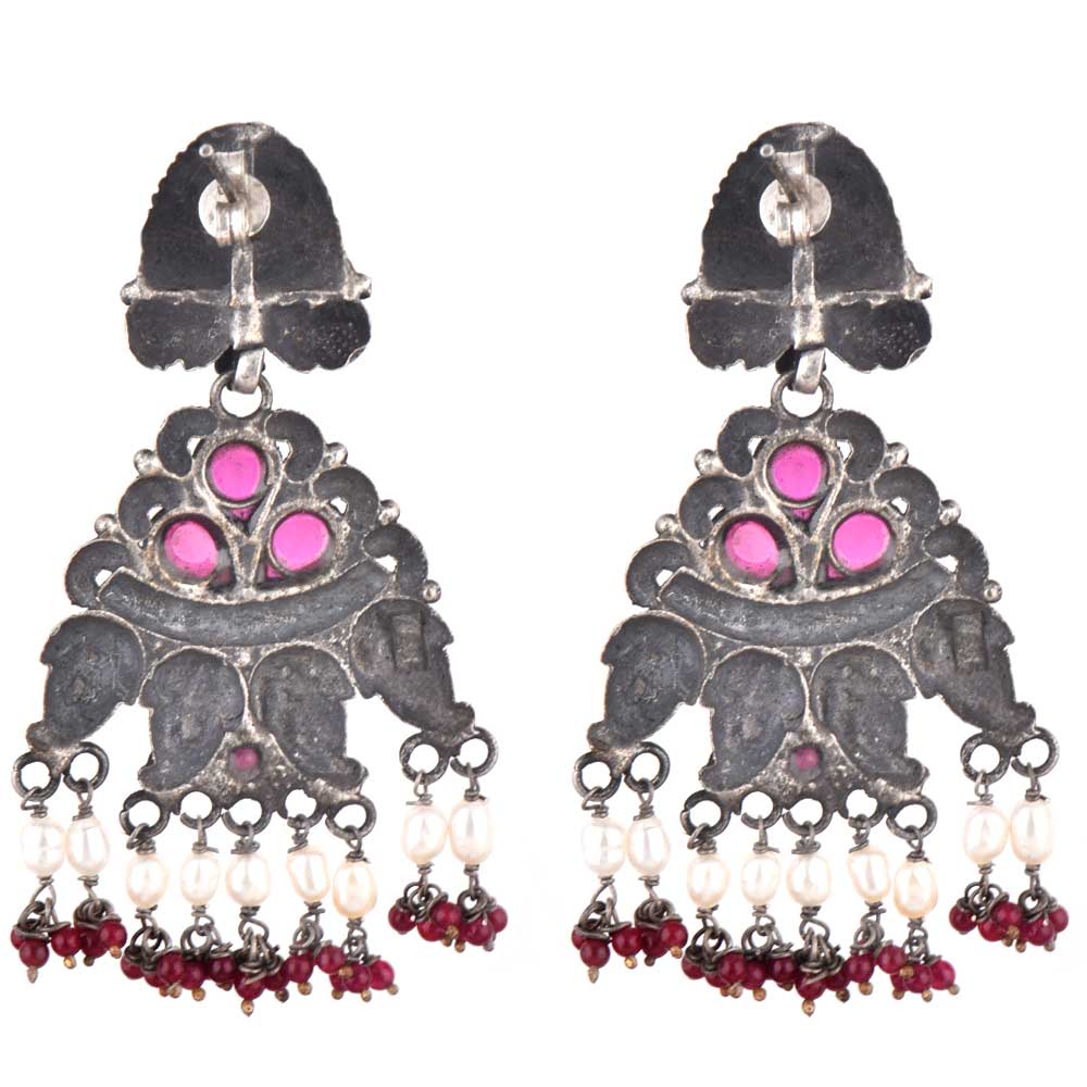 Tribal peacock 92.5 Sterling silver earrings Floral design Engraved Design Red Chalcedony and peal beads hanging at the bottom gives it color and style. Wear it yourself or gift it your near and dear ones . Wedding gift , Annivesary Gift or valentine gift.