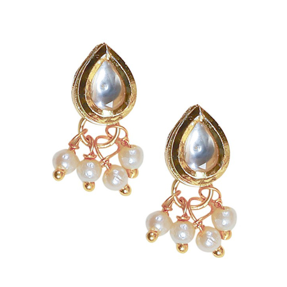 This necklace and earring set captivates with its teardrop kundan stones, reliable gold-tone construction, and pearl chain, blending minimal elegance and sophistication in a design that appeals to jewelry lovers and gift-givers alike.