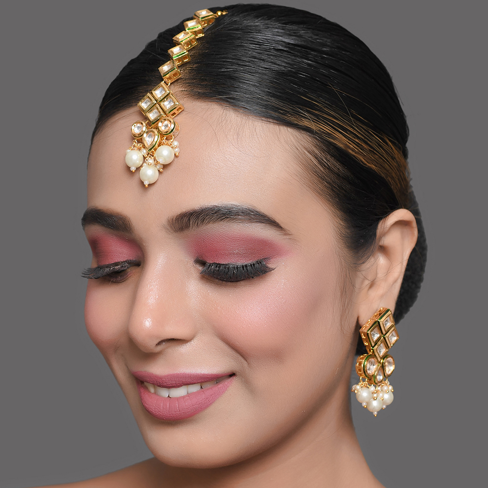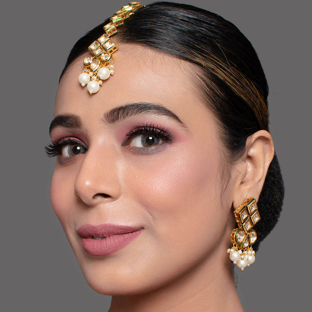 Graceful and intricately composed, these lattice mirror earrings showcase a refined balance of geometry and softness. The design features square mirror stones arranged in a structured lattice form, softened by delicate pearl drops that add gentle movement and classic charm. Earring Design Highlights Handcrafted with attention to proportion and detail, these earrings blend traditional mirror work with timeless pearl accents. Lattice-style arrangement of square mirror stones Elegant pearl drops adding fluid motion Lightweight construction for comfortable wear Handcrafted detailing with polished gold-toned finish Designed to complement both festive and evening looks Specs & Materials Material: Metal alloy with mirror-style stones and pearl drops Colour: Warm gold tone with clear mirror stones and ivory pearls Design: Structured lattice pattern with soft hanging elements Origin: Handmade in India and individually quality-checked Natural variations may occur due to handcrafted artistry Styling & Gifting Perfect for weddings, festive gatherings, and formal events Pairs well with sarees, lehengas, and contemporary outfits An elegant gift option for celebrations and special occasions Adds refinement without overpowering the ensemble Care Instructions Store in a soft pouch away from moisture. Avoid direct contact with perfume or water. Clean gently with a dry, soft cloth after use. Artisan Craftsmanship This piece is entirely handcrafted using traditional jewellery techniques. No machines are used in its creation, ensuring each pair carries its own unique artisanal character.