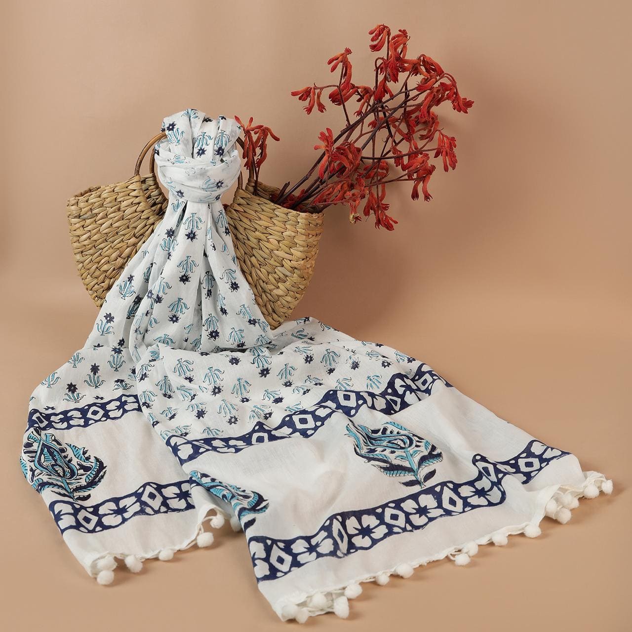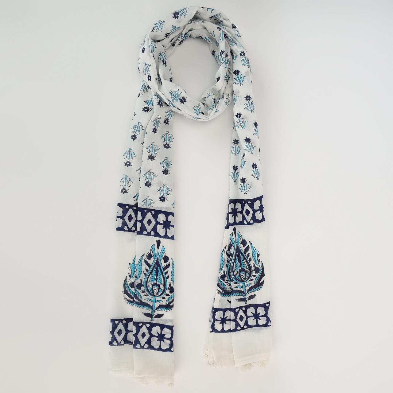 Drape yourself in timeless elegance with this exquisitely crafted stole, adorned with intricate patterns and delicate floral accents in a serene blend of blue and white. Its refined design and versatile charm make it the perfect accessory to elevate any look with effortless sophistication.