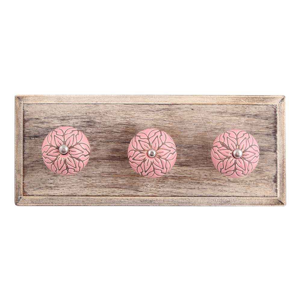Pink Amarylis Floral Etched Ceramic Wooden Hook. A Perfect Complement to the Soft Tone of the Wood are these White Traditional Hat & Coat Hook Made of Genuine Porcelain and Brass. It can be use to Hang Jewellery, Leashes, Towels, Scarves, Light Weight Sweaters, Caps Etc.