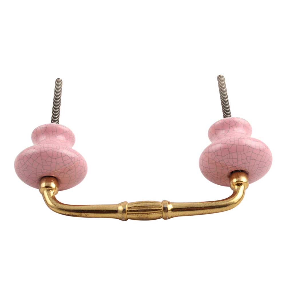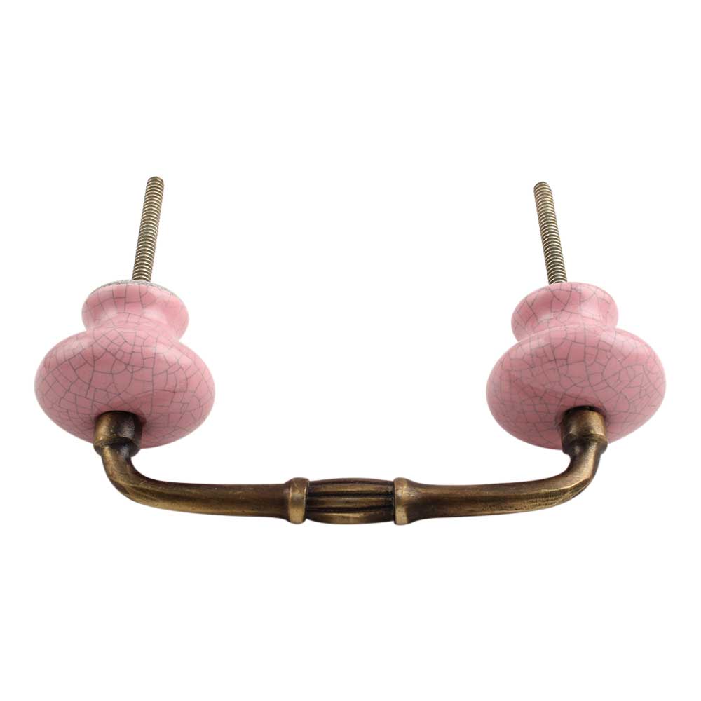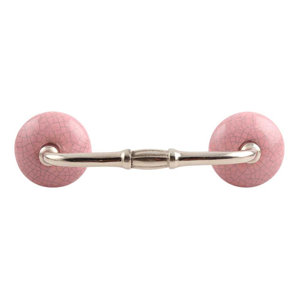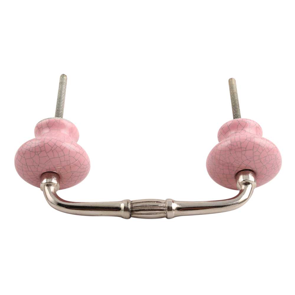 Pink and Black Crackle Ceramic Bridge Handle. Ideal for Drawer, Dresser, Cabinet, Wardrobe, Cupboard and Almirah.
