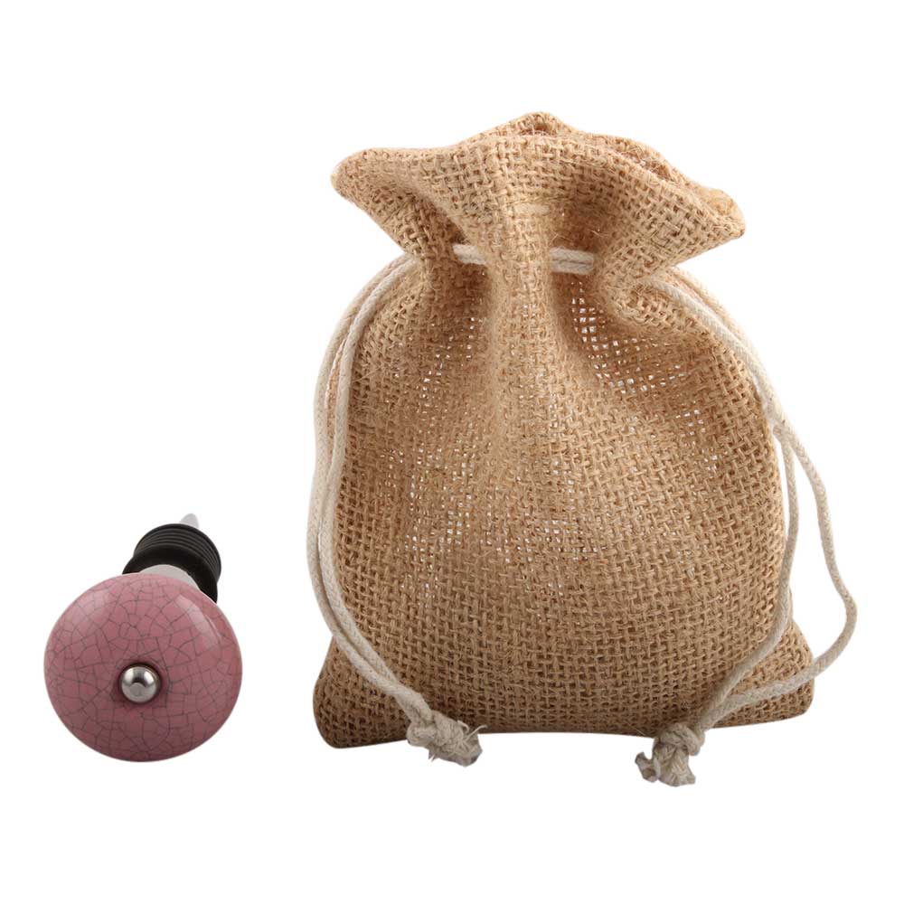 Pink Black Crackle Ceramic Wine Stopper.zinc alloy wine bottle stopper with attractive Jute Bag Packaging.