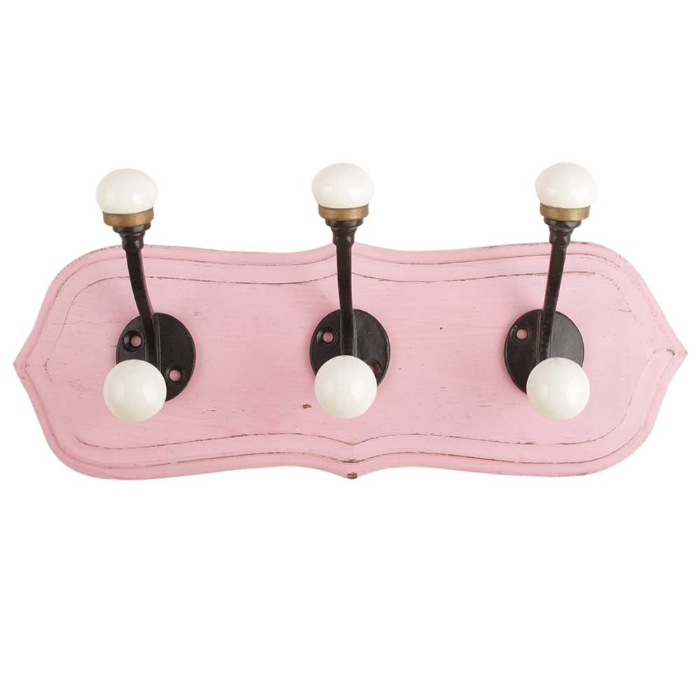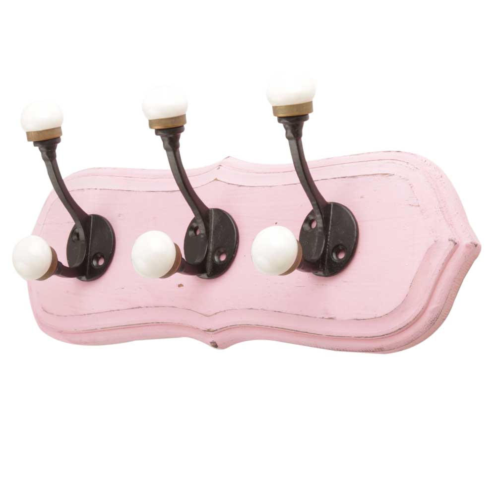 Pink Black Double Loop Ceramic Iron Wooden Hooks. A Perfect Complement to the Soft Tone of the Wood are these White Traditional Hat & Coat Hook Made of Genuine Porcelain and Brass. It can be use to Hang Jewellery, Leashes, Towels, Scarves, Light Weight Sweaters, Caps Etc.