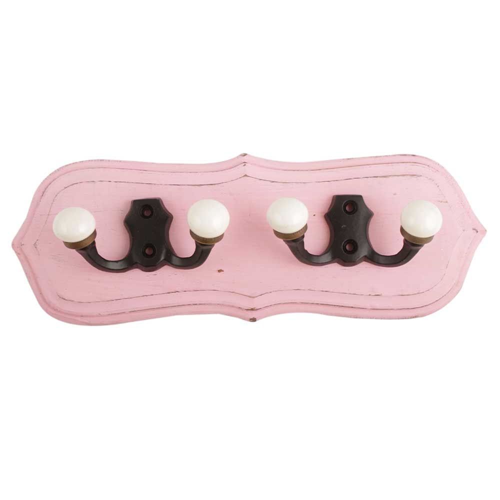 Pink Black Double Loop Ceramic Iron Wooden Hooks. A Perfect Complement to the Soft Tone of the Wood are these White Traditional Hat & Coat Hook Made of Genuine Porcelain and Brass. It can be use to Hang Jewellery, Leashes, Towels, Scarves, Light Weight Sweaters, Caps Etc.