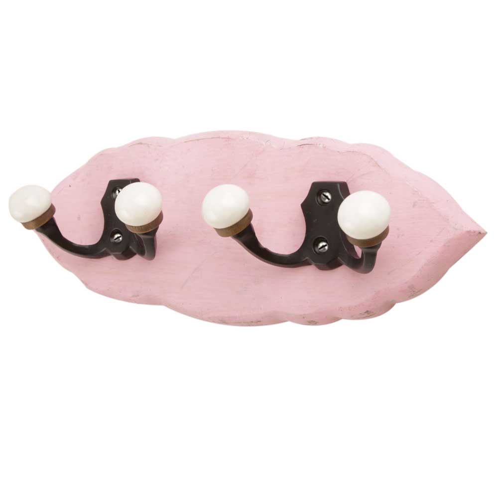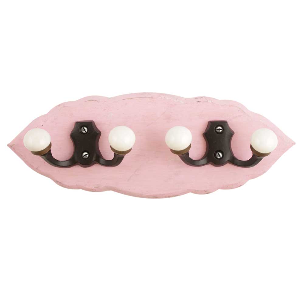Pink Black Double Loop Ceramic Iron Wooden Hooks. A Perfect Complement to the Soft Tone of the Wood are these White Traditional Hat & Coat Hook Made of Genuine Porcelain and Brass. It can be use to Hang Jewellery, Leashes, Towels, Scarves, Light Weight Sweaters, Caps Etc.