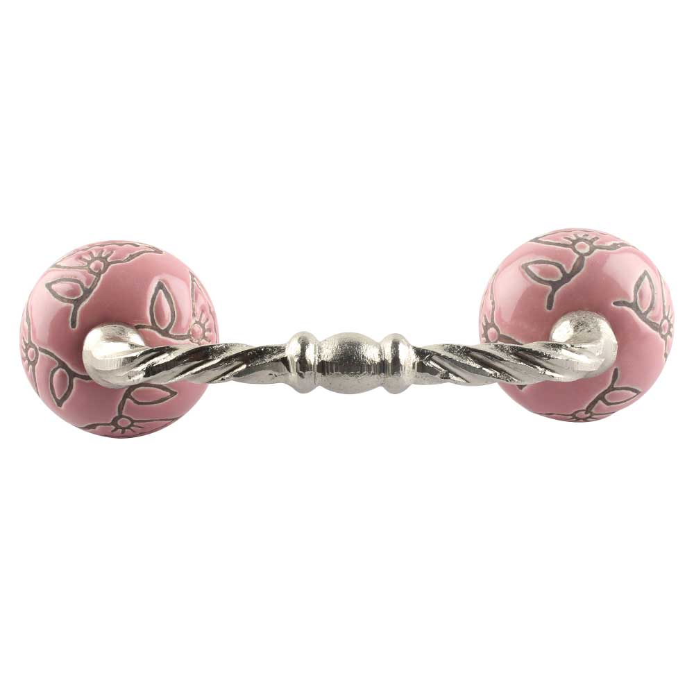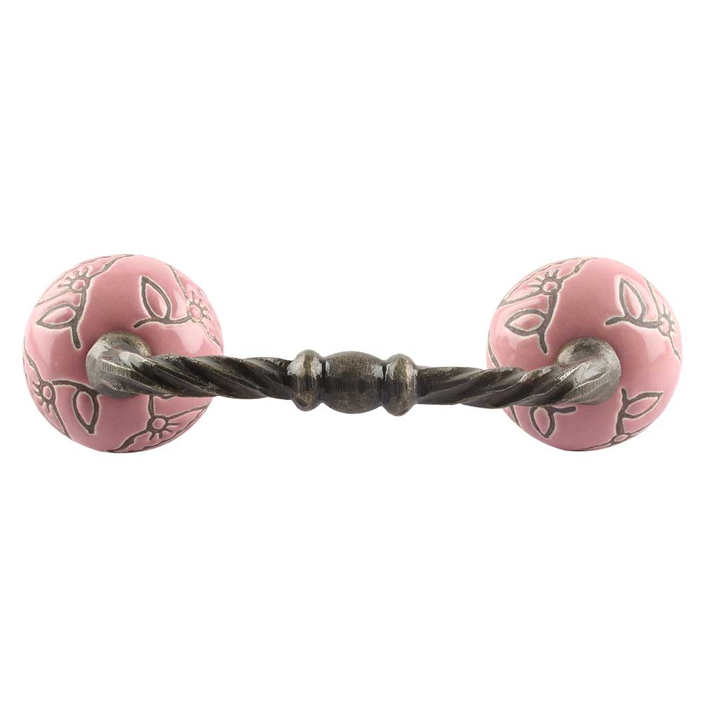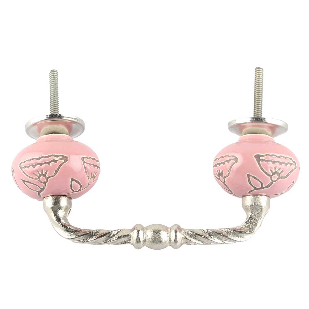 Pink Calla Lily Brown Etched Ceramic Cut Bridge Handle. Ideal for Drawer, Dresser, Cabinet, Wardrobe, Cupboard and Almirah etc.