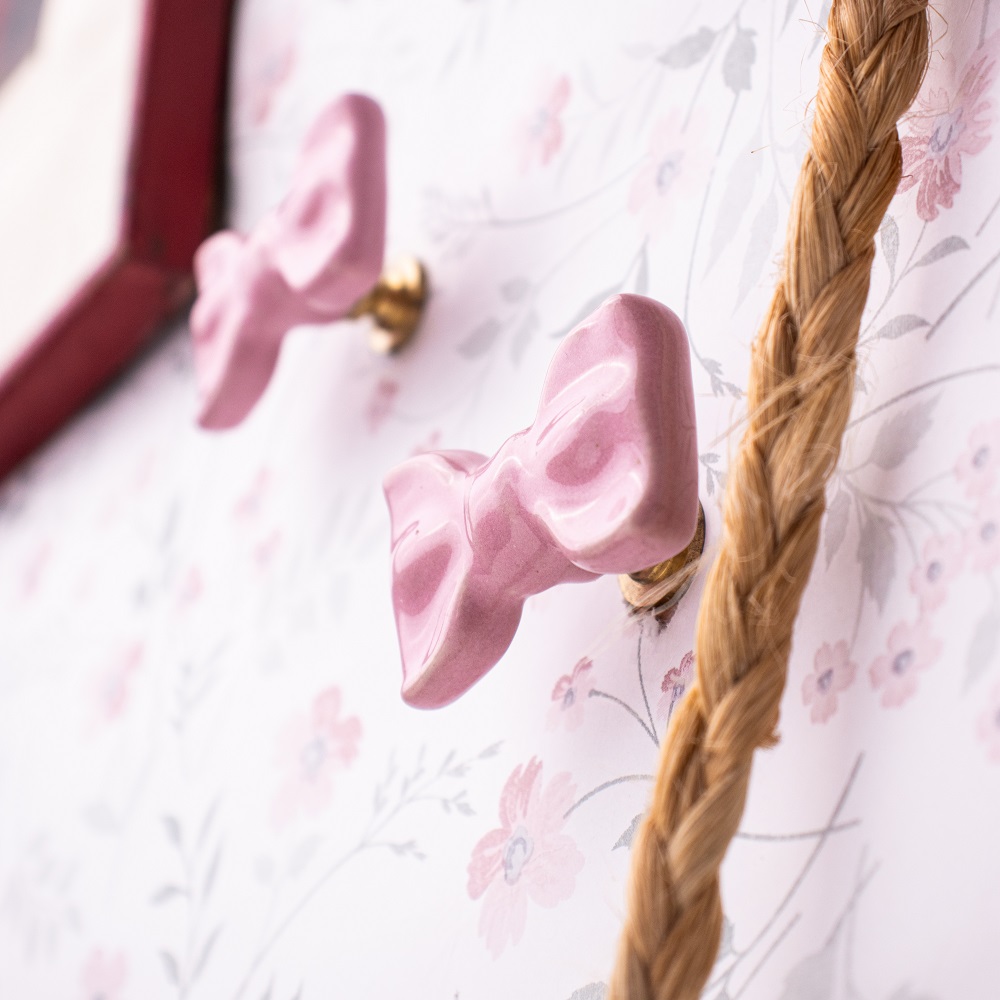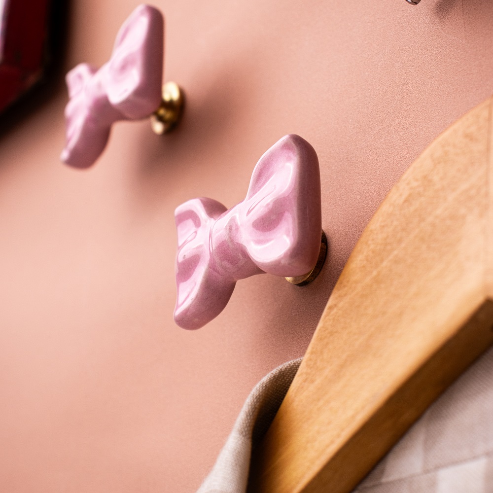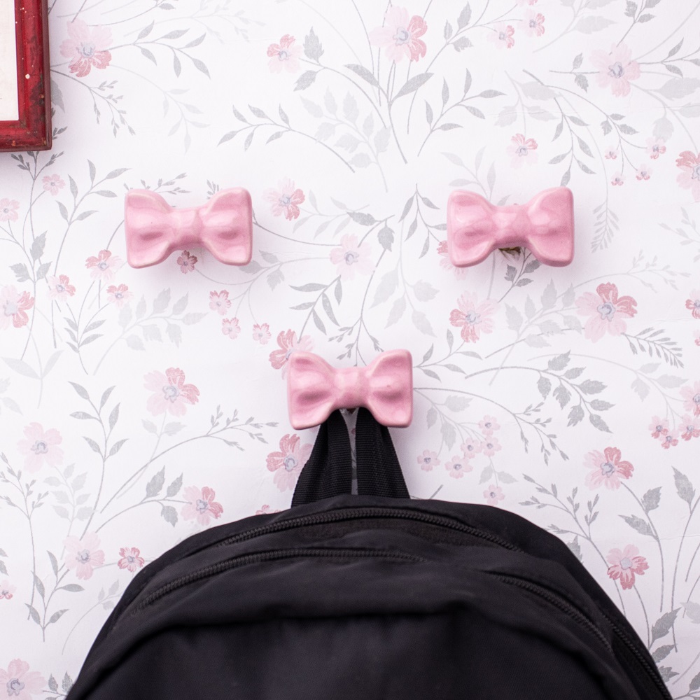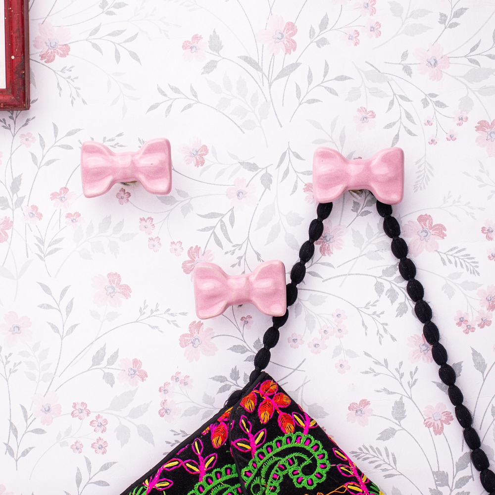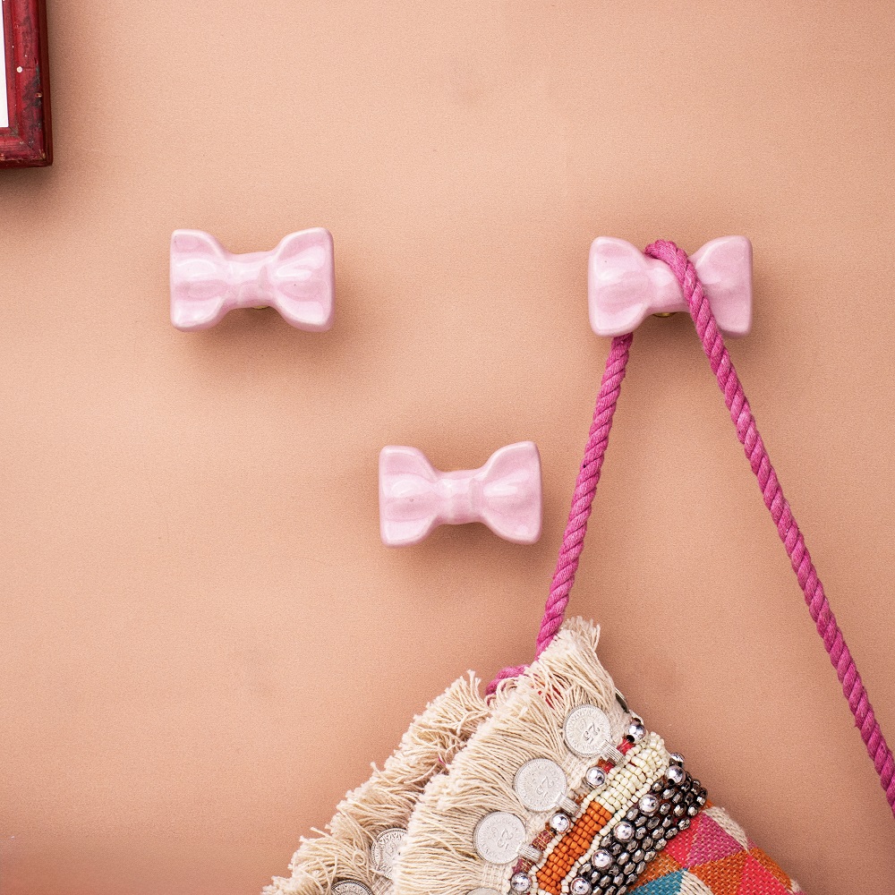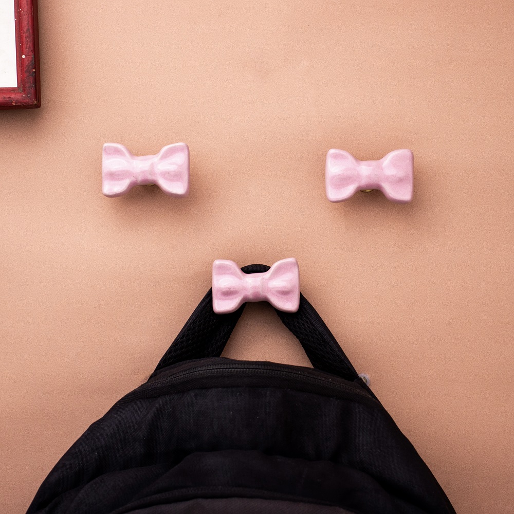 Pink Ceramic Bow Modern Wall Hook-Pack of 3. This Hook is Strong Enough to Hold Your Cloths, Keys, Tea Cups, Coffee Mugs, Hand Towels Etc.