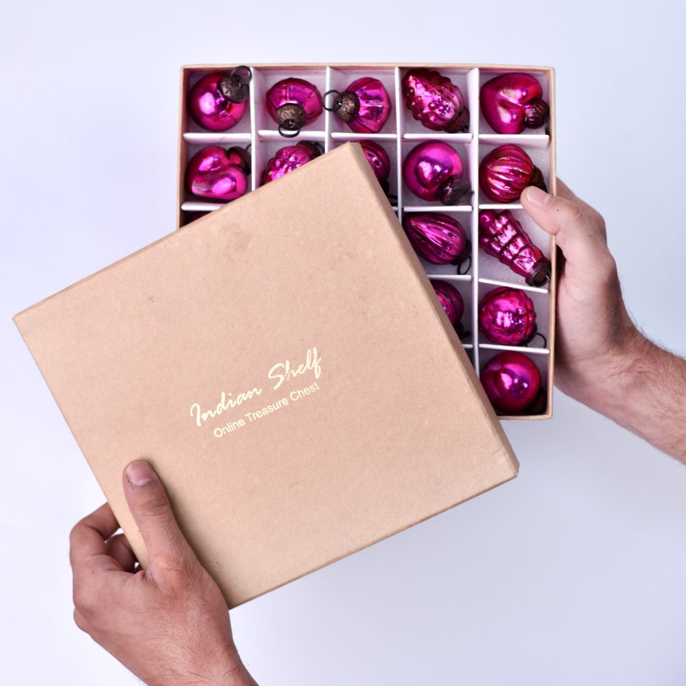 Pink Christmas Ornaments Which Used In Christmas Decoration like Christmas tree etc.