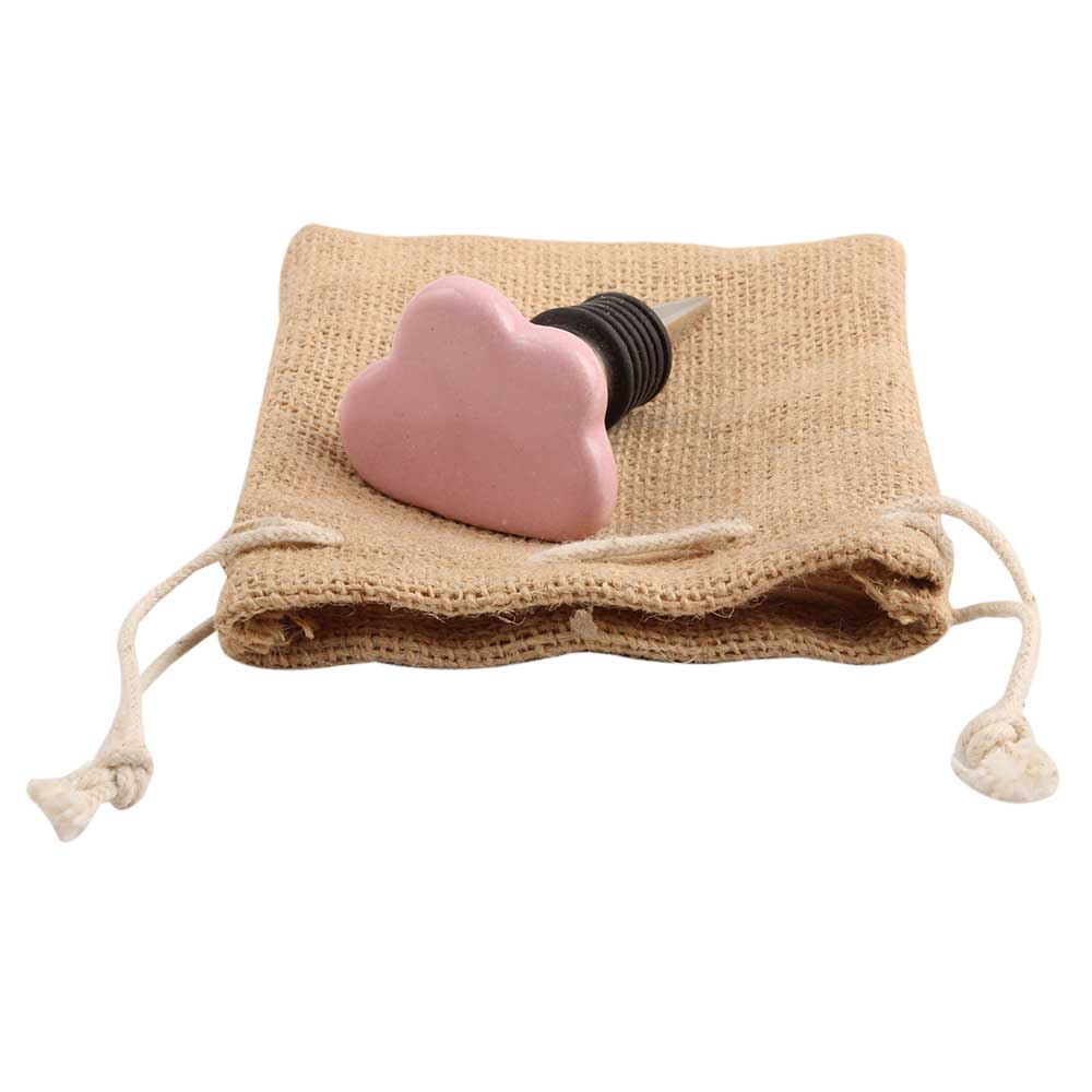 Pink Cloud Ceramic Wine Stopper. Zinc Alloy Wine Bottle Stopper with Attractive Jute Bag Packaging.