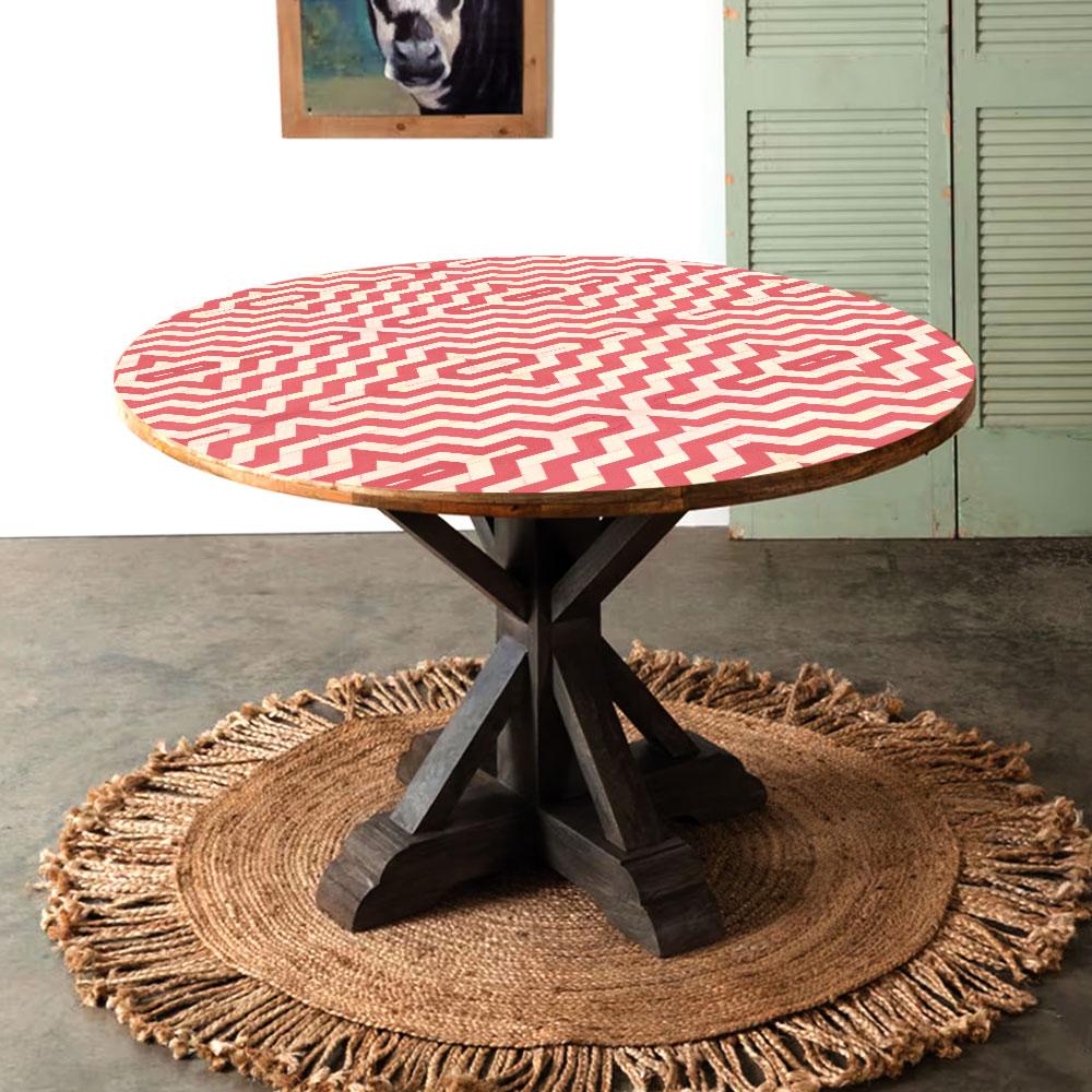 A handcrafted table top that is a true testament to the craftsmanship of professional Indian artisans. This stunning piece is a fusion of wood, acrylic, and resin, meticulously designed with a captivating pink pattern engraved on a pristine white background. Whether adorning your home's dining table, or gracing the coffee tables of restaurants and hotels, this table top is guaranteed to make a lasting impression. Handcrafted with utmost precision, these table tops boast intricate and beautiful designs that are sure to catch the eye. The high-quality materials used ensure exceptional durability, surpassing the lifespan of ordinary alternatives. With two options available, you can choose between the elegant circular shape or the sleek rectangular design to suit your personal preference and style. These table tops also make for exceptional gifts, perfect for your loved ones on special or festive occasions. Whether enhancing a console table, kitchen table, or desks, this unique and versatile piece adds a touch of sophistication and charm to any setting. Experience the timeless beauty and artistry of our handcrafted table tops, an ideal choice for both decorative and functional purposes.