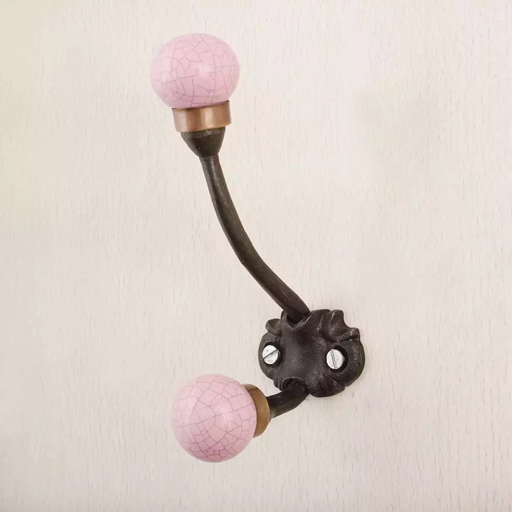 Pink Crackle Iron Hook-Ehg-83. When Put on Wall or Cabinet It Gives A Sturdy Look. This Hook is Strong Enough to Hold Your Cloths, Keys, Tea Cups, Coffee Mugs, Hand Towels Etc.