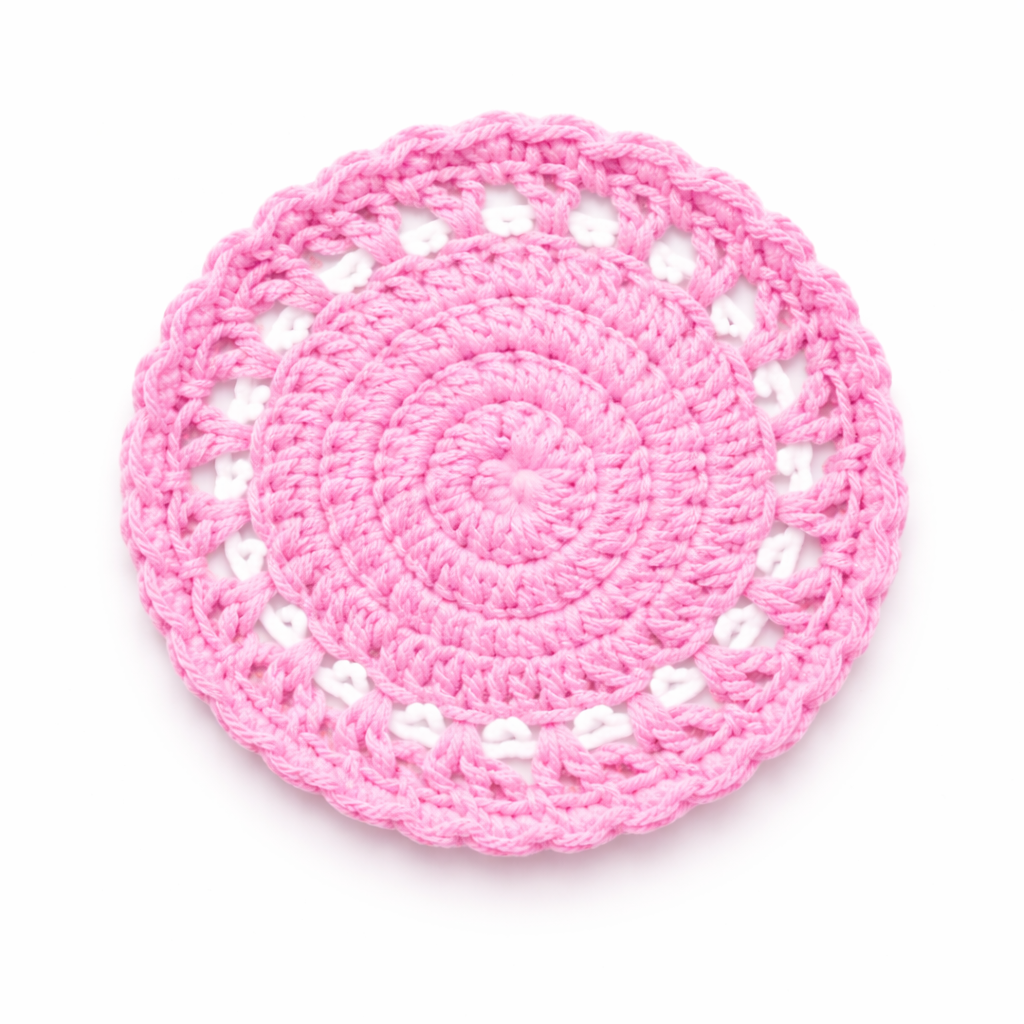 - Handcrafted crochet coaster made from cotton yarn