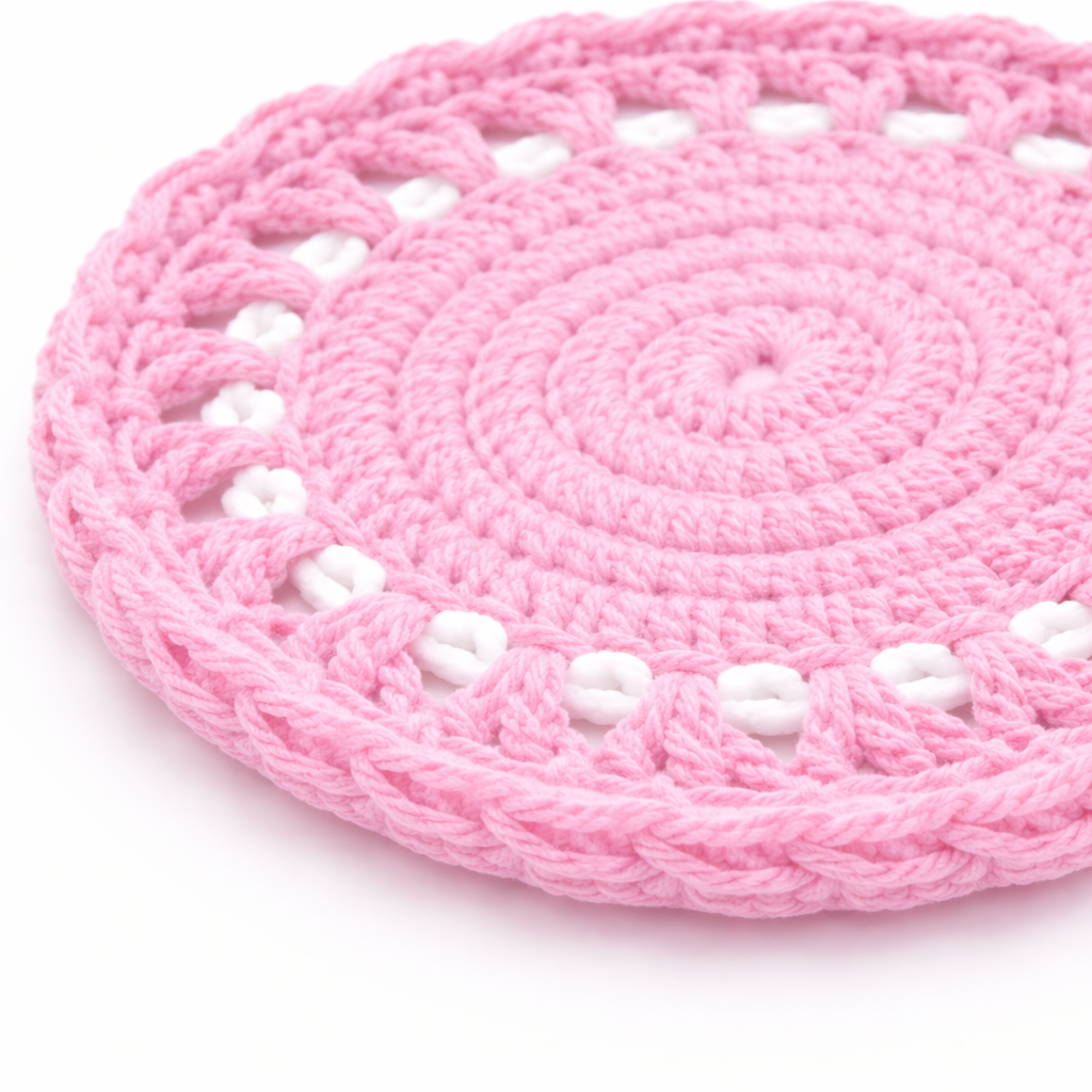 This pink crochet coaster is carefully handcrafted using premium cotton yarn and designed in a beautiful round doily pattern. The soft pink color brings a gentle decorative touch to coffee tables, dining tables, and tea setups while the crochet lace pattern reflects traditional handmade craftsmanship. Functional and decorative, this cotton yarn coaster helps protect surfaces from cup marks, heat, and moisture.