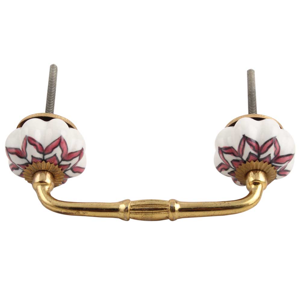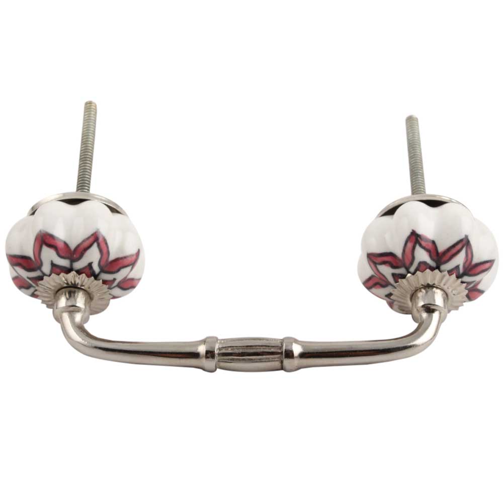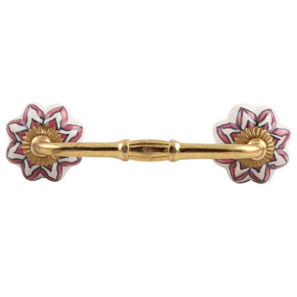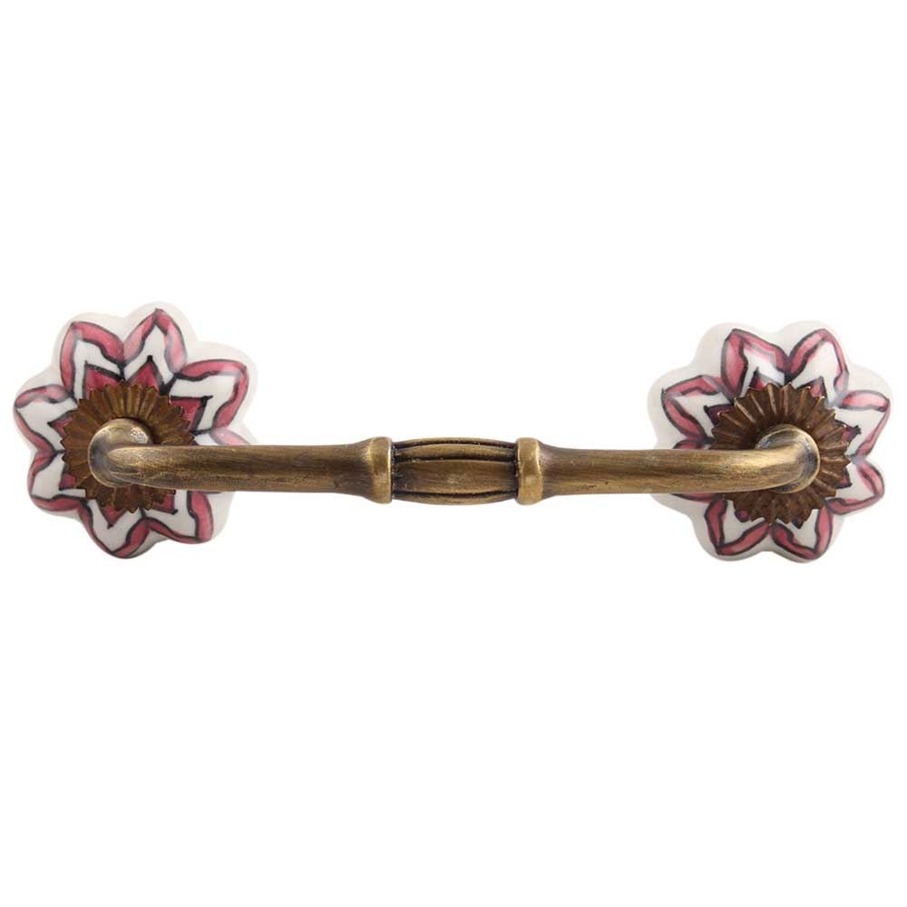 Pink Dahlia Medium Ceramic Bridge Handle. Ideal for Drawer, Dresser, Cabinet, Wardrobe, Cupboard and Almirah.