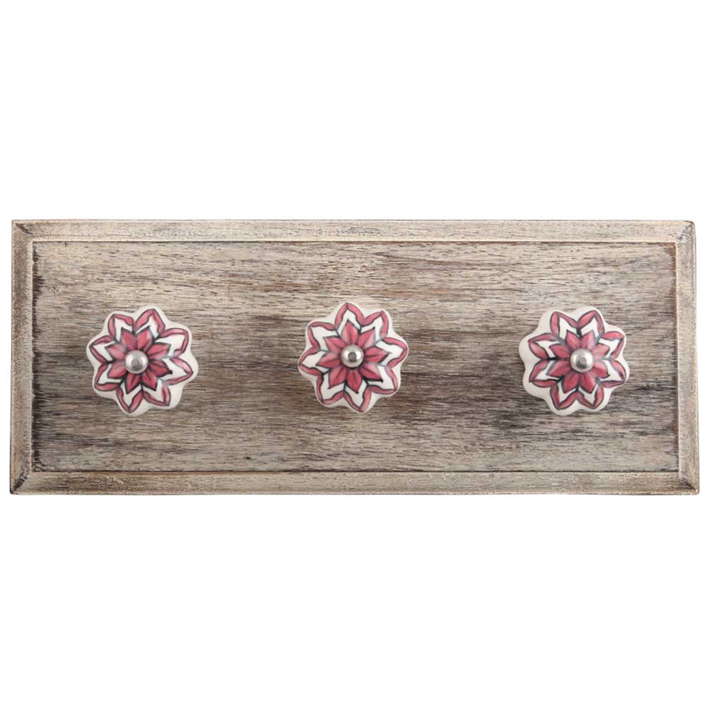 Pink Dahlia Medium Ceramic Wooden Hook. A Perfect Complement to the Soft Tone of the Wood are these White Traditional Hat & Coat Hook Made of Genuine Porcelain and Brass. It can be use to Hang Jewellery, Leashes, Towels, Scarves, Light Weight Sweaters, Caps Etc.
