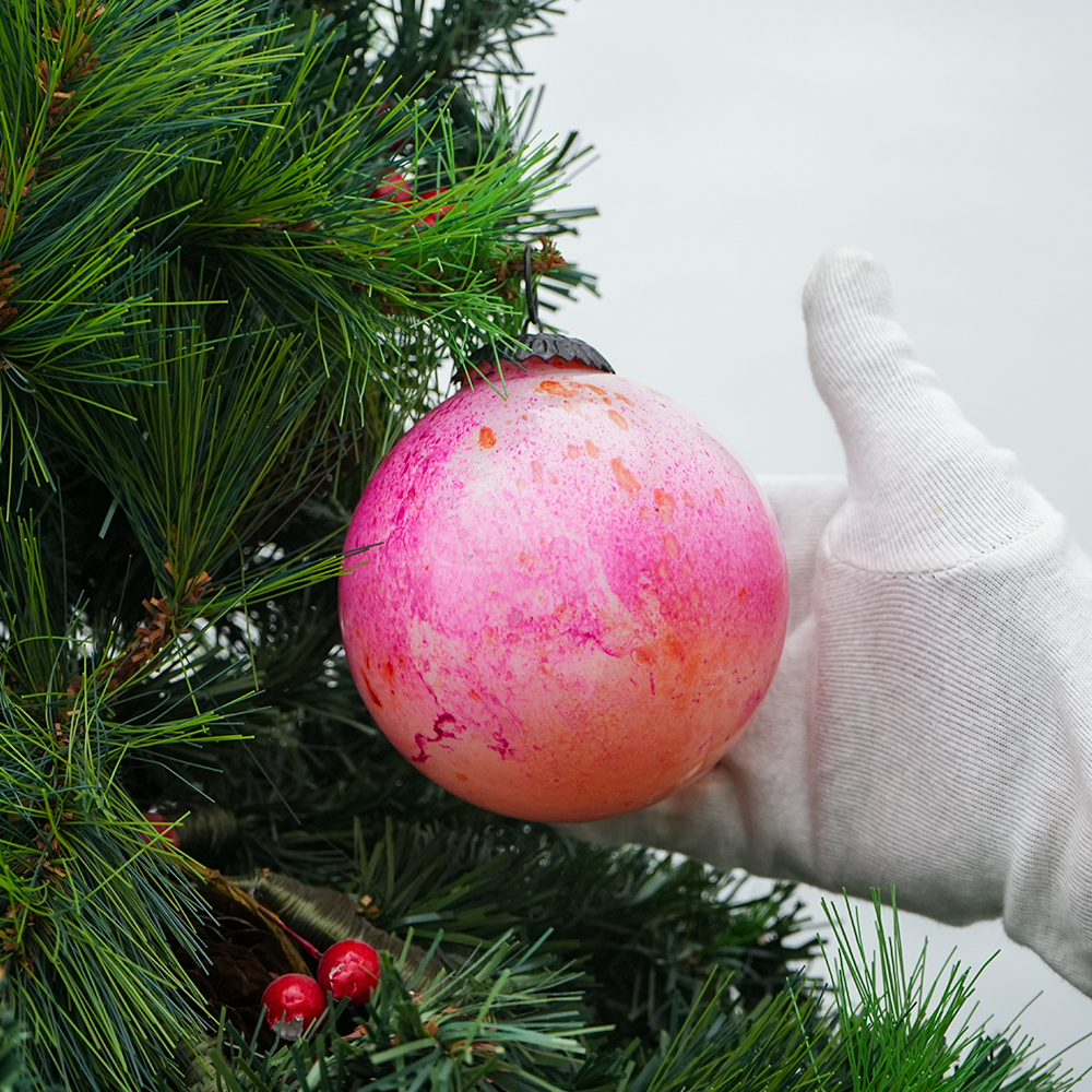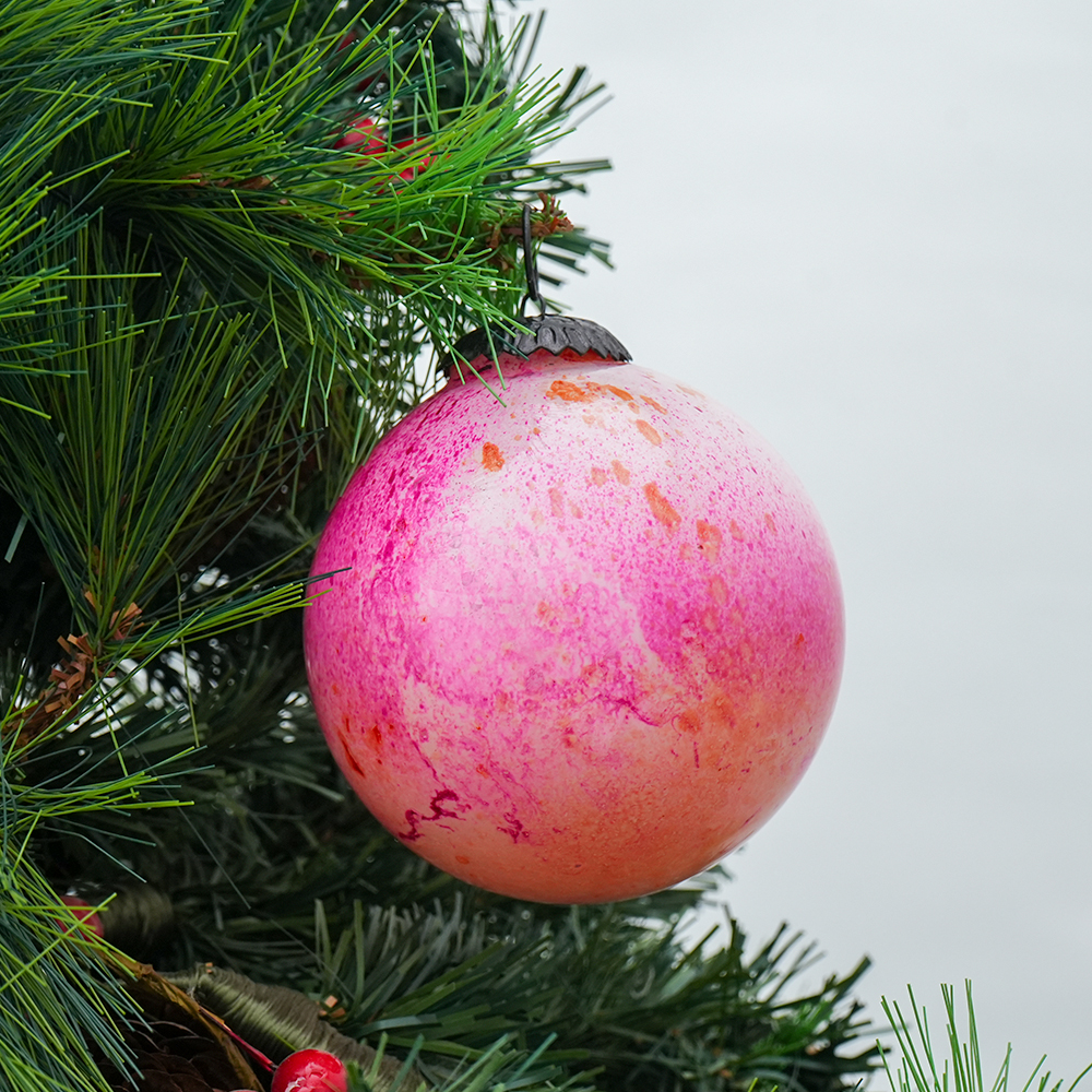 Pink Decorative Round Glass Hanging Ornament . Crafted from high-quality glass with a smooth glossy finish, this decorative bauble adds a classic and festive touch to Christmas trees, wreaths, and holiday displays.