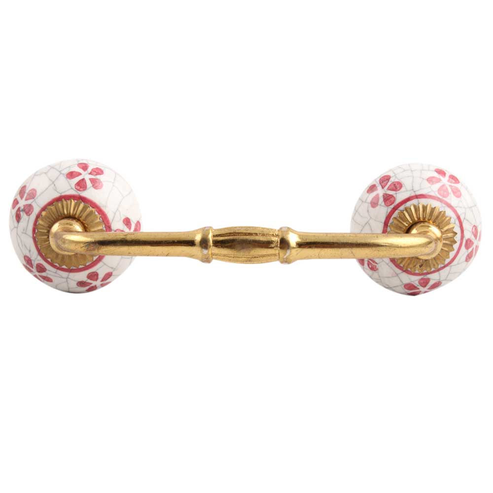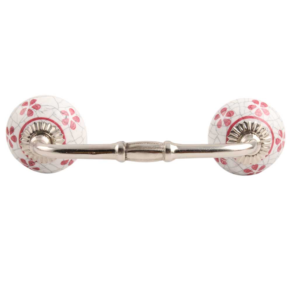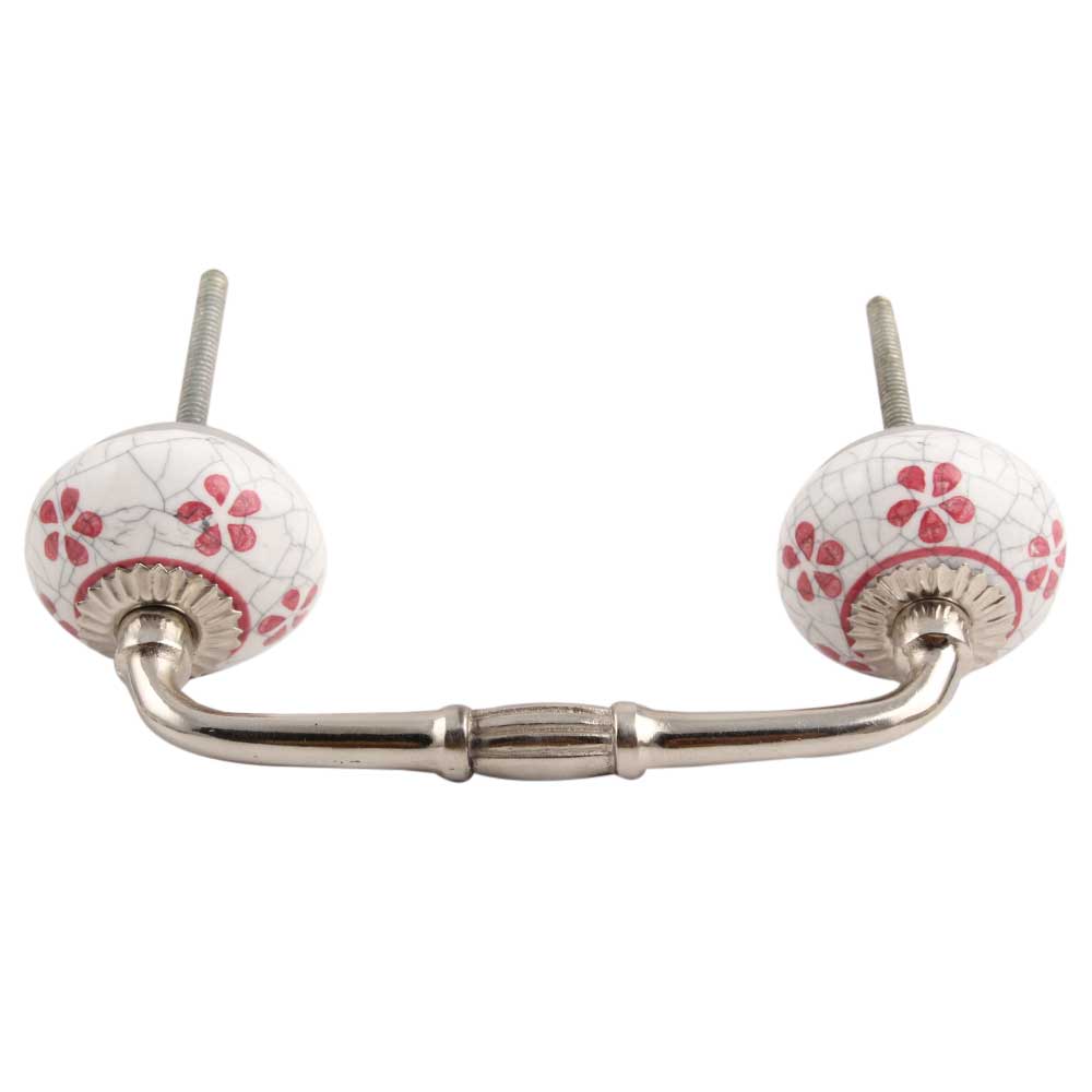Pink Floral Crackle Ceramic Bridge Handle. Ideal for kitchen Cabinets, kitchen Drawers, Dining Room, Bed Room, Chest Drawers, Dressing Tables, Almirahs, etc.