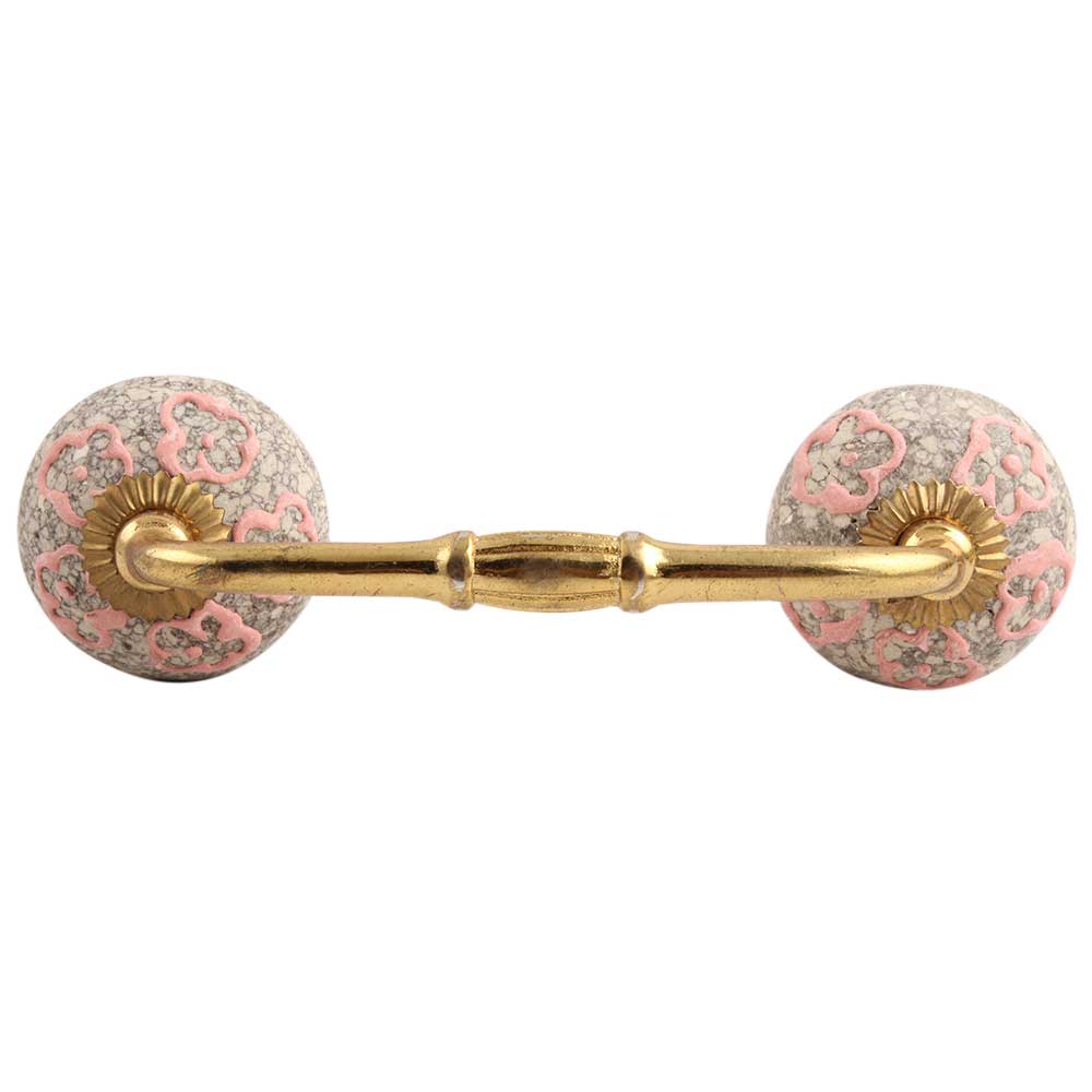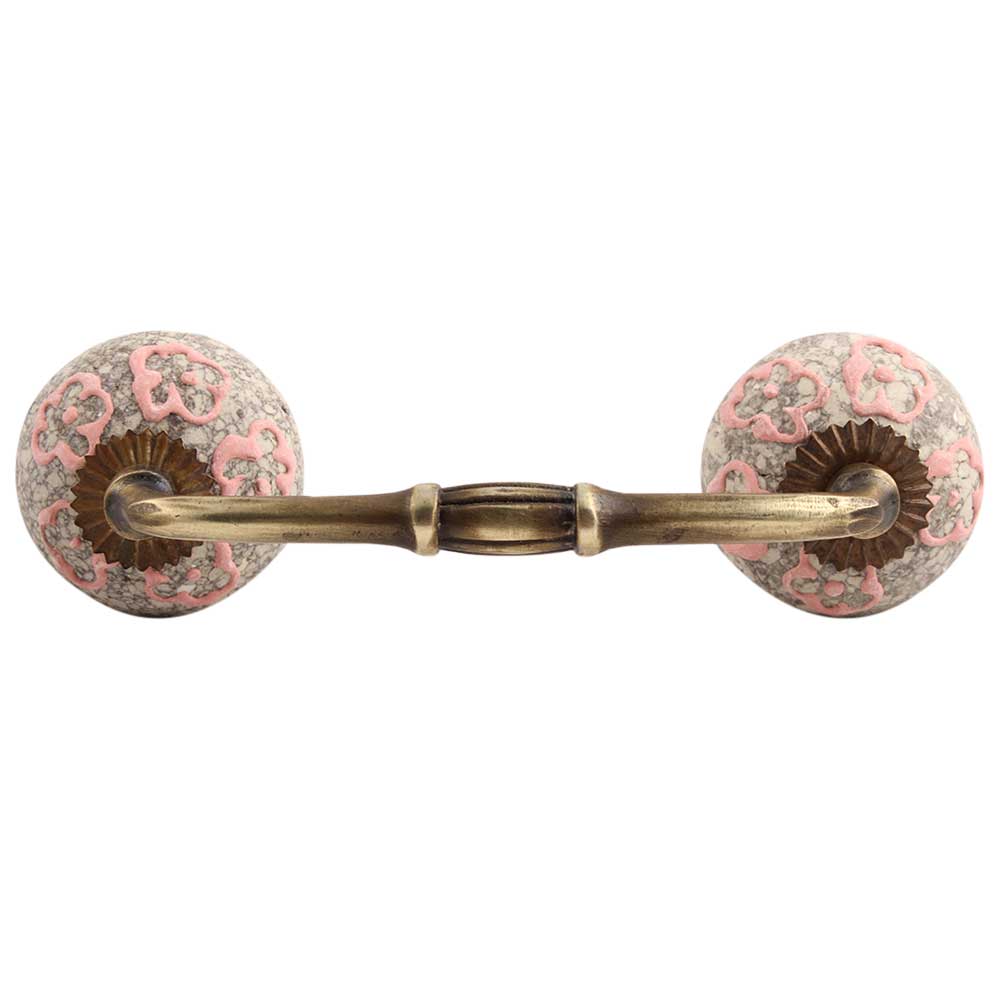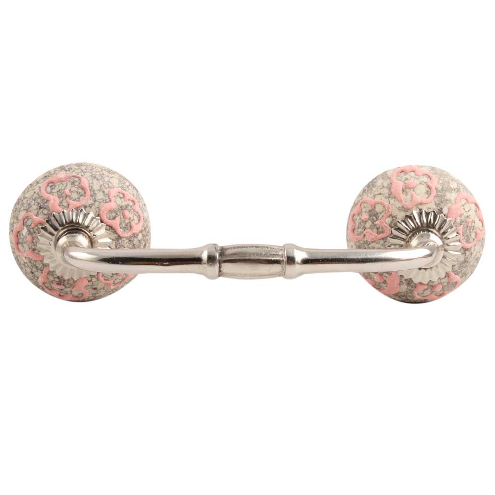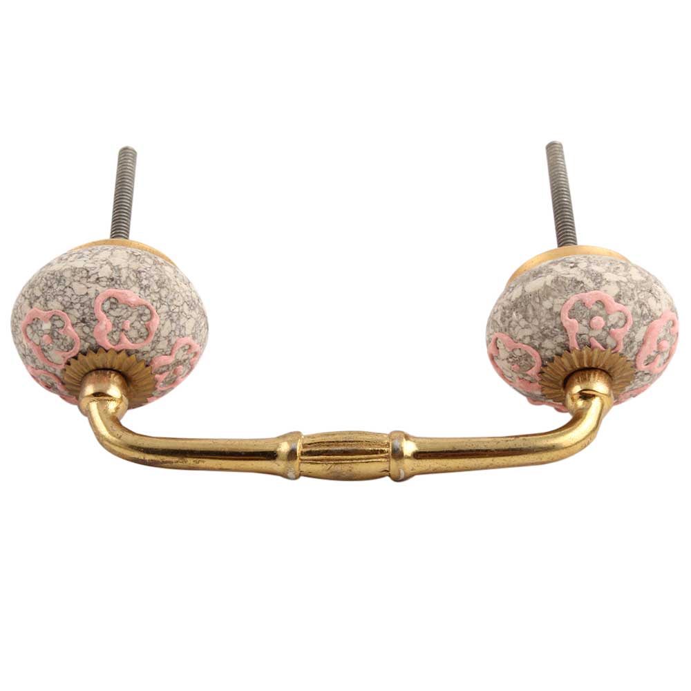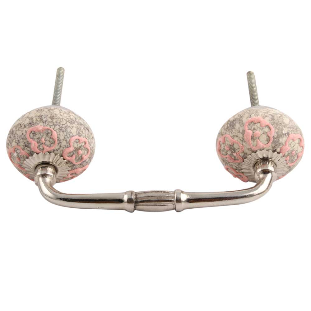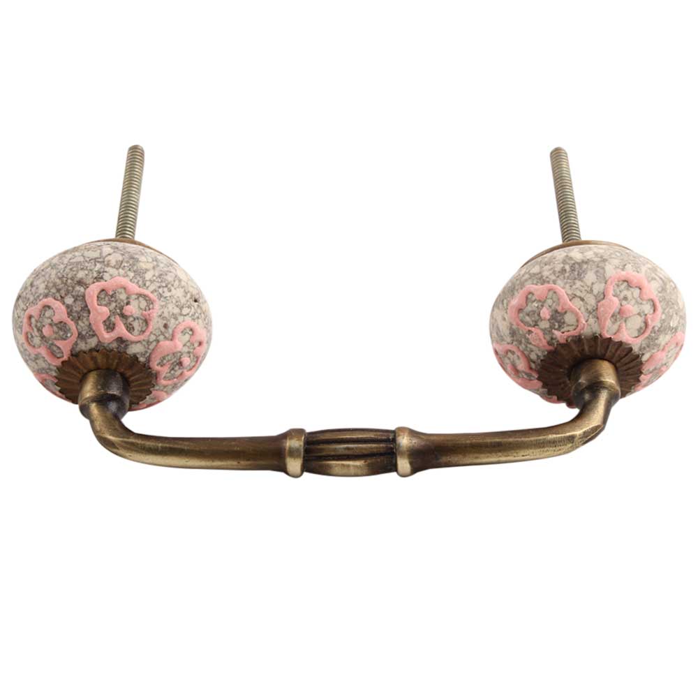 Pink Floral Crackle Ceramic Bridge Handles. Ideal for Drawer, Dresser, Cabinet, Wardrobe, Cupboard and Almirah.