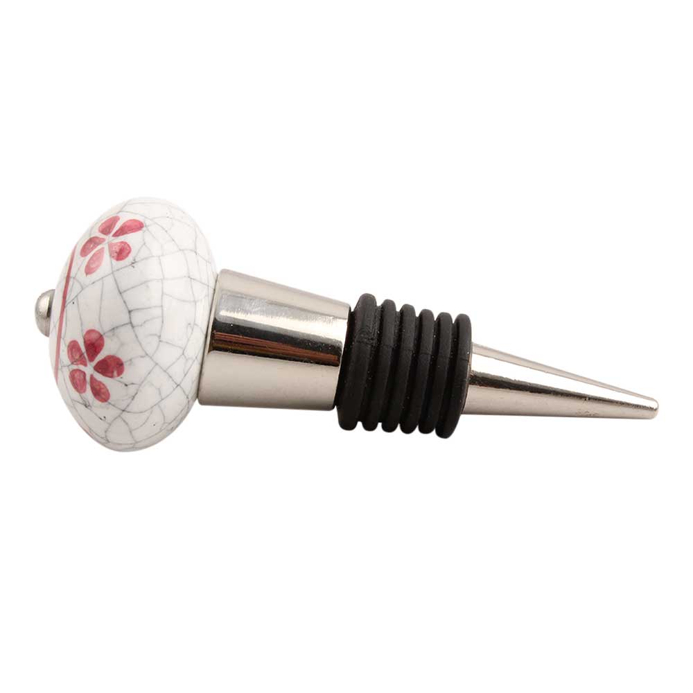 Pink Floral Crackle Ceramic Wine Stopper. Zinc Alloy Wine Bottle Stopper with Attractive Jute Bag Packaging.