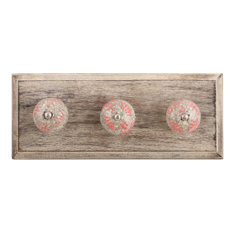 Pink Floral Crackle Ceramic Wooden Hook. A Perfect Complement to the Soft Tone of the Wood are these White Traditional Hat and Coat Hook Made of Genuine Porcelain and Brass. It can be used to Hang Jewelry, Leashes, Towels, Scarves, Light Weight Sweaters, Caps etc.