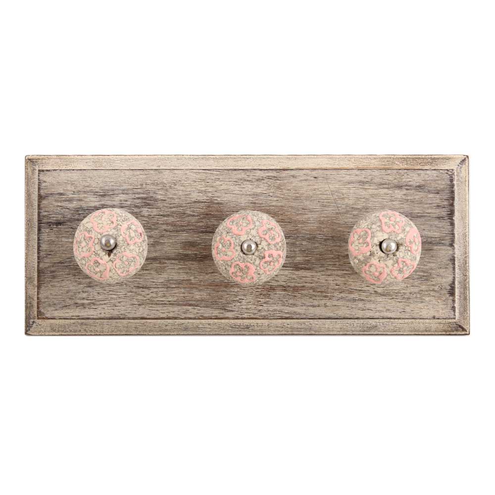 Pink Floral Crackle Ceramic Wooden Hook. A Perfect Complement to the Soft Tone of the Wood are these White Traditional Hat and Coat Hook Made of Genuine Porcelain and Brass. It can be used to Hang Jewelry, Leashes, Towels, Scarves, Light Weight Sweaters, Caps etc.