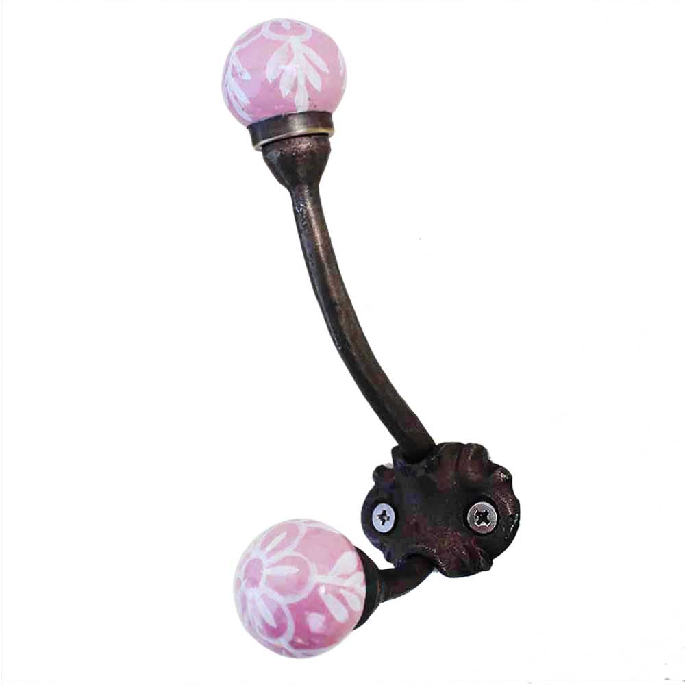 Pink Floral Iron Hook-EHG-42.when put on wall or cabinet it gives a sturdy look. This hook is strong enough to hold your cloths, keys, tea cups, coffee mugs, hand towels etc.