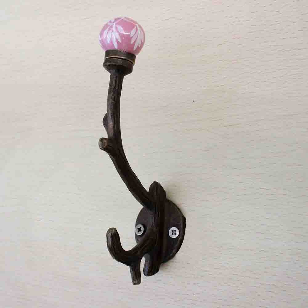 Pink Floral Tree Hook-EHG-42.when put on wall or cabinet it gives a sturdy look. This hook is strong enough to hold your cloths, keys, tea cups, coffee mugs, hand towels etc.